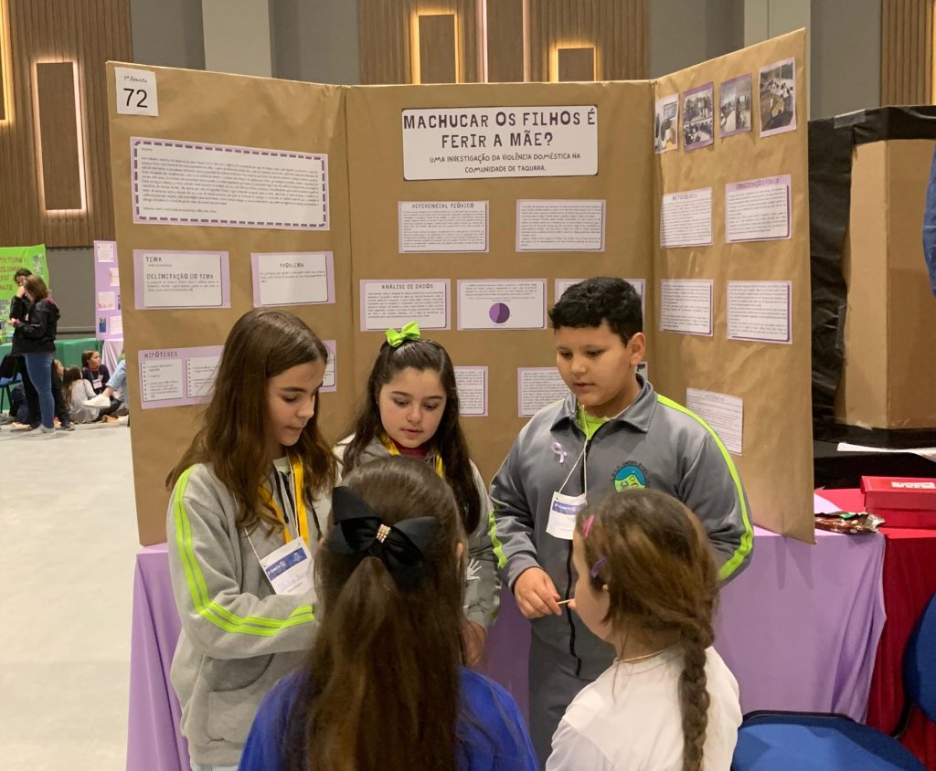 Entre os trabalhos expostos, alunos do 5º ano da Escola Municipal Calisto Eolálio Letti apresentaram o projeto “Machucar os Filhos é Ferir a Mãe?”, voltado à investigação da violência doméstica na comunidade.
