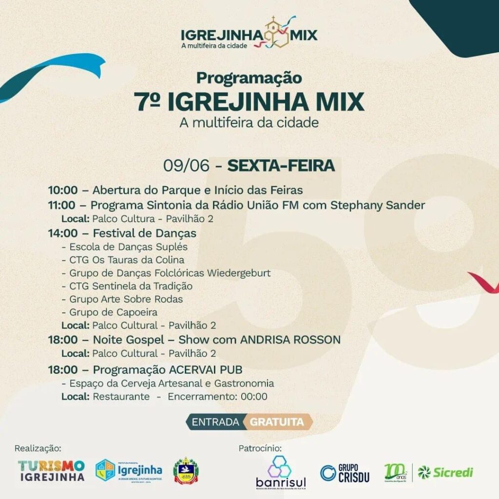 O prefeito de Igrejinha, Leandro Hörlle, destacou que o primeiro dia de Igrejinha Mix já contou com um grande público, principalmente da comunidade igrejinhense. “Tivemos ao longo do dia diversas programações em segmentos diferentes para todos os públicos. A entrada é gratuita e toda a festa está sendo pensada para receber da melhor forma tanto os visitantes, como os expositores, que juntos, fazem com que o Igrejinha Mix cresça a cada edição”, diz Leandro.