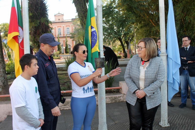Relembrando o fato histórico de que estamos comemorando os 200 anos de Independência do Brasil, a prefeita Sirlei Silveira recebeu a centelha das mãos da presidente do Rotary Club Inclusão Taquara, Kátia Turmina.