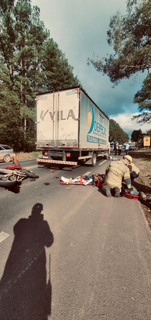 Conforme o registro dos bombeiros, o piloto da moto sofreu lesões e foi socorrido por uma ambulância do SAMU, sendo levado para o Hospital Bom Jesus, em Taquara. A caroneira da moto não apresentava lesões e recusou atendimento médico no local. O policiamento rodoviário também compareceu no local e já liberou o trânsito.