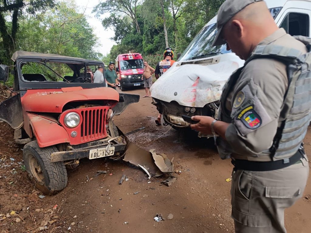 Na tarde de ontem (02), o Corpo de Bombeiros Voluntários de Igrejinha (CBVI) e a Brigada Militar atenderam um acidente no interior de Igrejinha. A colisão frontal entre um Jeep e uma van resultou em dois feridos.