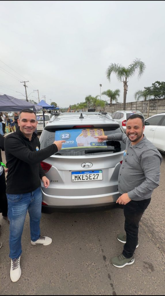 O candidato a prefeito de Parobé Gilberto Gomes e seu vice Adriano Azeredo, que concorrem pela Coligação Juntos Para Seguir Avançando (que reúne PDT, PSD, Republicanos, União Brasil e Podemos), realizaram no último sábado, 17, ao lado do Parque do Festejando Parobé, um grande Adesivaço.
