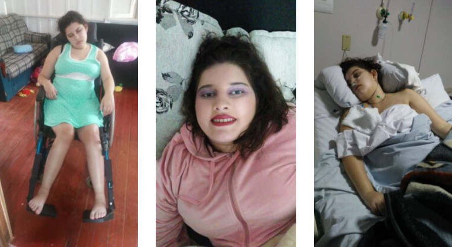 A jovem faz uso diário de cerca de 15 medicamentos, com valores que podem chegar a R$ 296,00 cada. Dentre eles estão: Depakene 500mg (8 ao dia); Keppra de 750 mg (6 ao dia); Clonazepam de 2 mg (4 ao dia); Rispiridona de 2mg (2 ao dia); Primid de 250 mg (2 ao dia) e faz uso diário de Vitamina D3; Bromoprida; Combirom; Plasil; Levotiroxina; L cartinina e Óleo mineral, além de um medicamento chamado Fy compa, de 2 mg (4 ao dia). Esse medicamento tem o custo R$ 296,00 sendo importado dos Estados Unidos (EUA). “Além disso, é necessário o uso de pomadas e hidratantes para evitar assaduras e ulcera por pressão”, diz a mãe. Como se não bastassem todas as dificuldades, a família, que é composta por mais um filho, de 15 anos, e duas gêmeas, de 2 anos, vive em uma área de risco onde, em dias de muita chuva é atingida pela enchente.