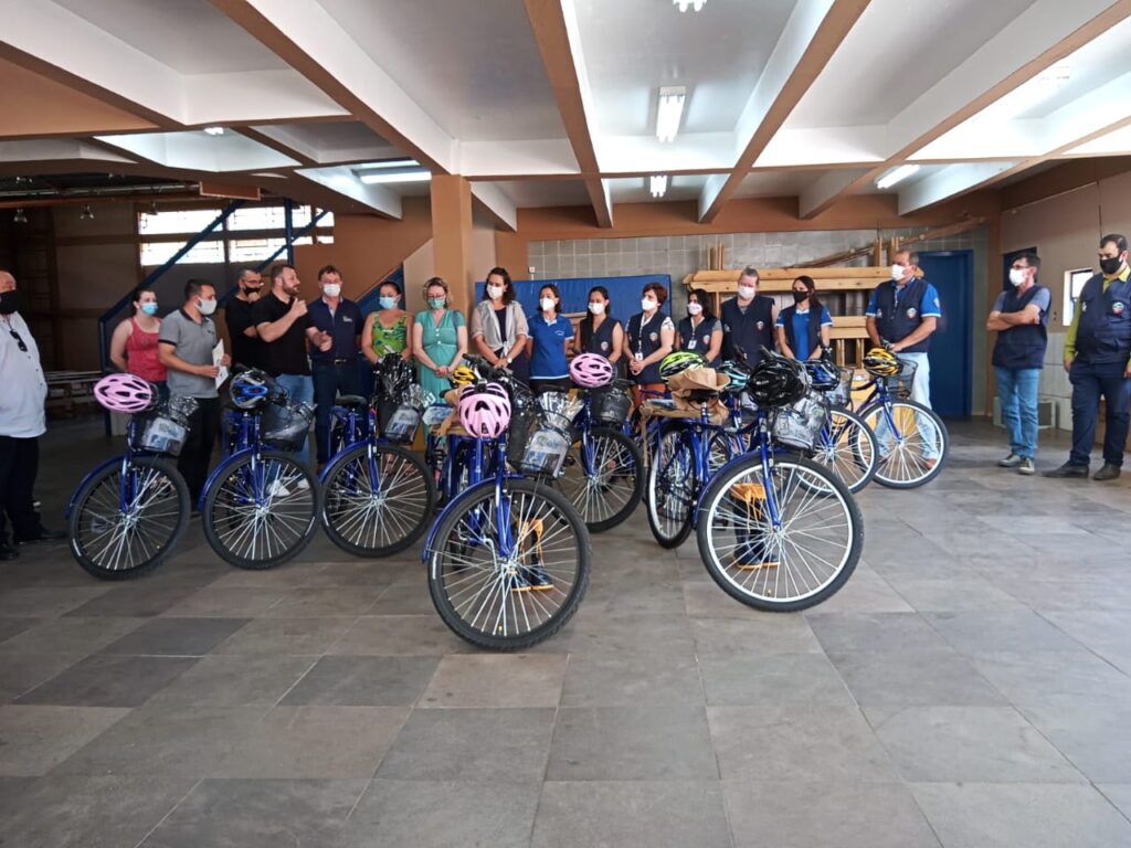 Foram entregues 11 bicicletas com marchas, luz de sinalização, cesto e capacete; 12 tabletes e 12 capas de proteção ao aparelho; protetores solares; 11 chapéus com proteção de pescoço; 11 capas de chuva; 11 mochilas; 11 pares de botas de borracha; 1 data show; 11 coletes de identificação; materiais de uso e consumo, além da aquisição de software para auxiliar a traçar perfil de saúde individual e coletivo no município.