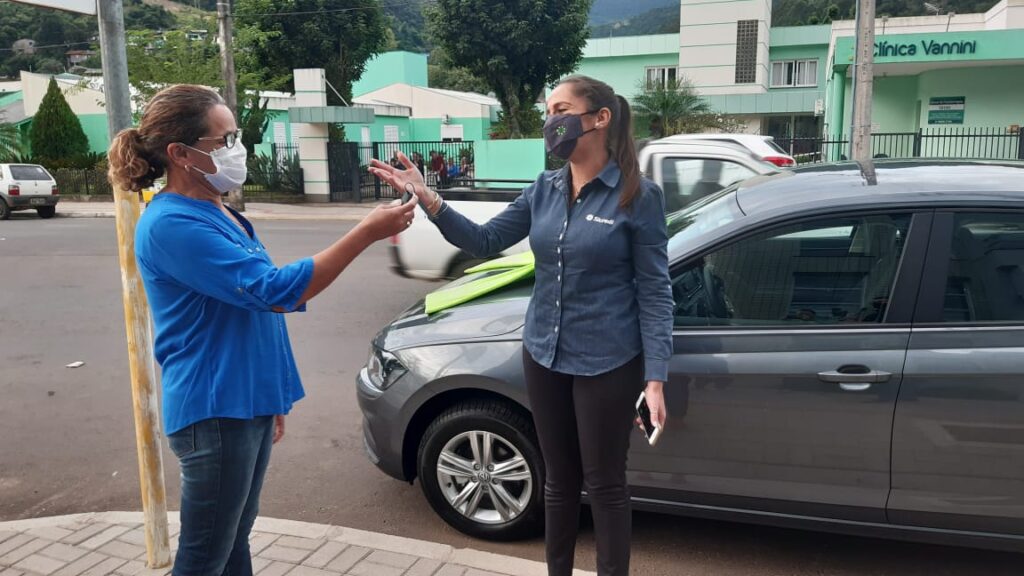 A associada Ana Elen de Figueiredo recebeu, na última semana, um Volkswagen Polo 2021 0Km em frente à agência Sicredi de Riozinho, onde é associada. O veículo passou por uma carreata pelas ruas da cidade até ser entregue com suas chaves para a grande vencedora da Campanha Ganha, Ganha, Ganha, que sorteou o veículo dia 26 de março. Participaram do sorteio todos os associados da cooperativa que investiram a partir de R$ 2 mil reais até o dia 24 de março.