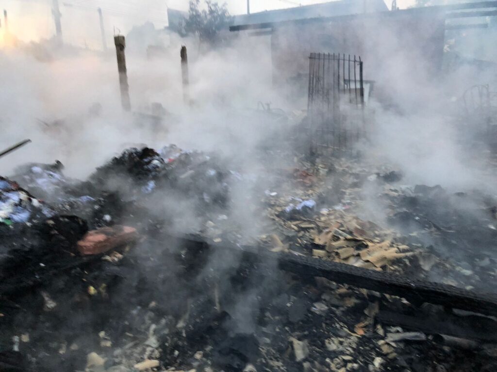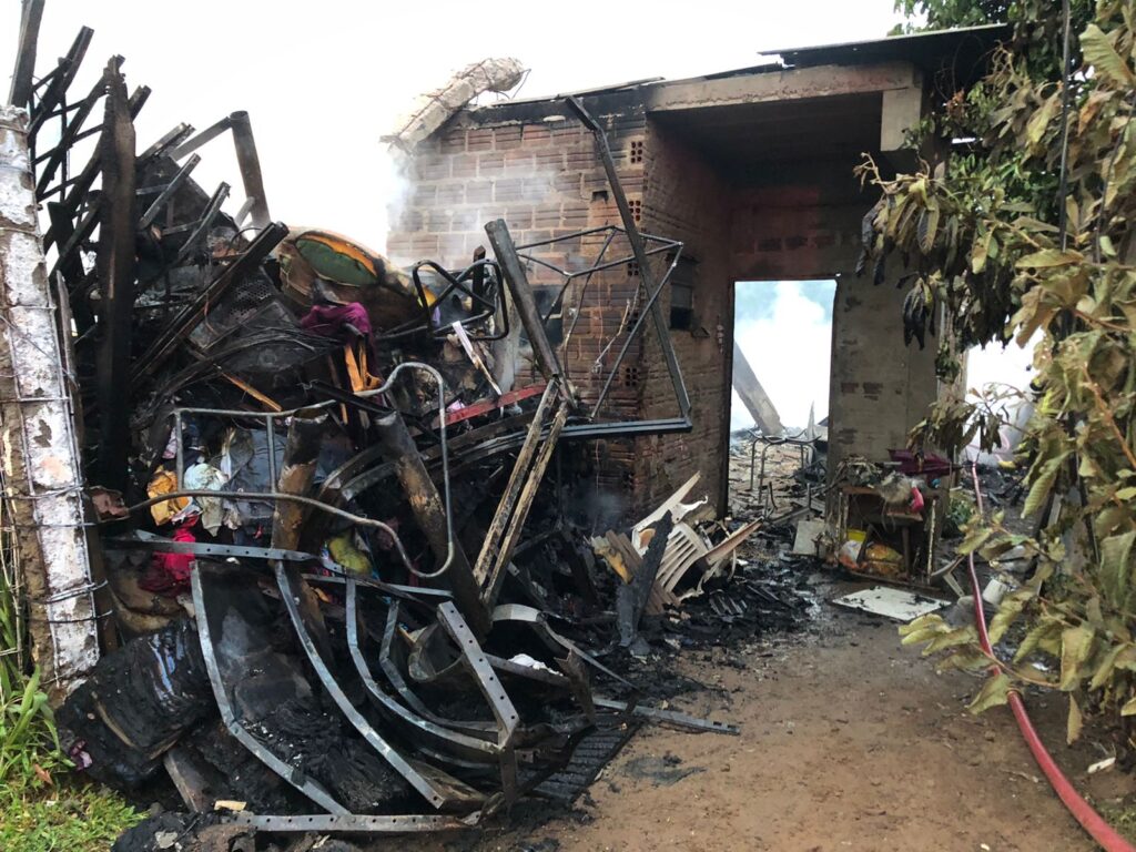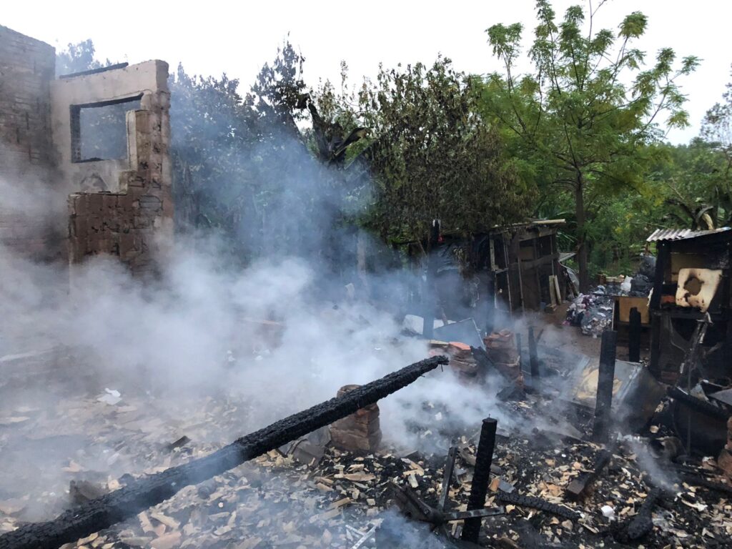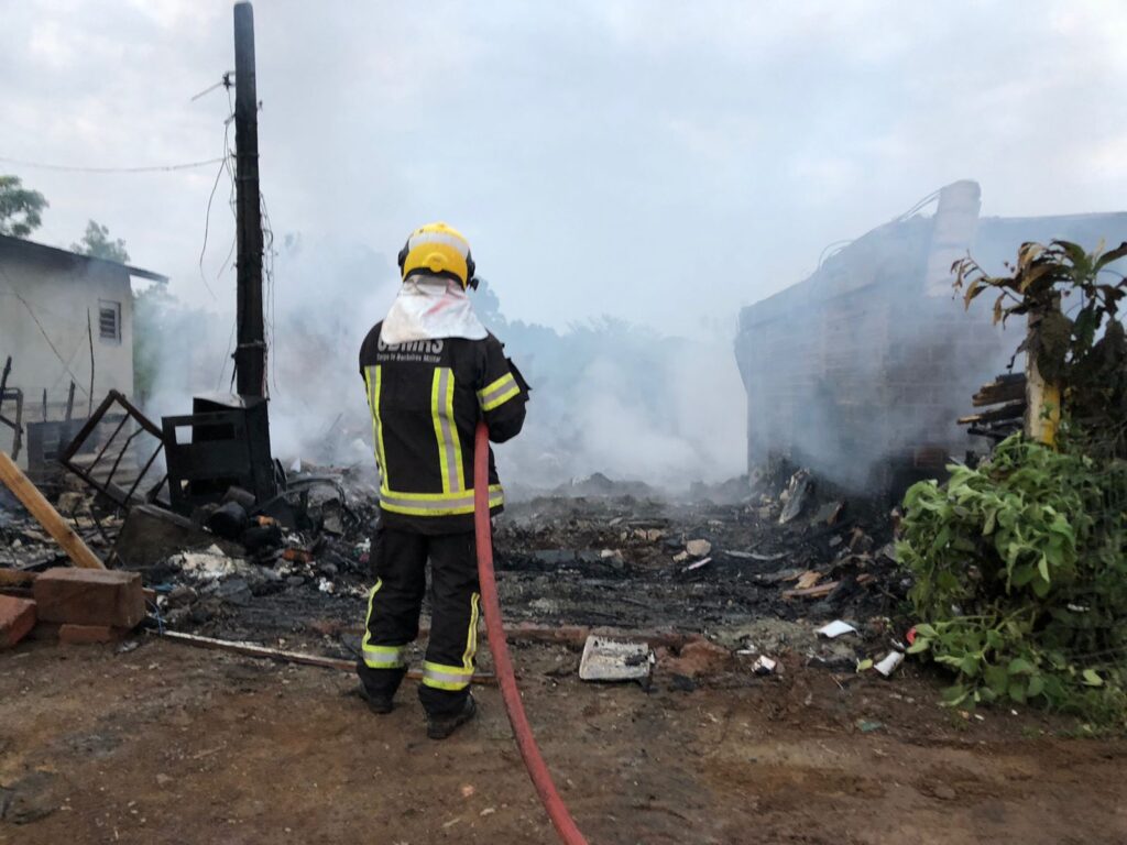 Rapidamente, as chamas se alastraram por todo o terreno, onde havia 10 imóveis, que serviam de moradia e também como depósito.