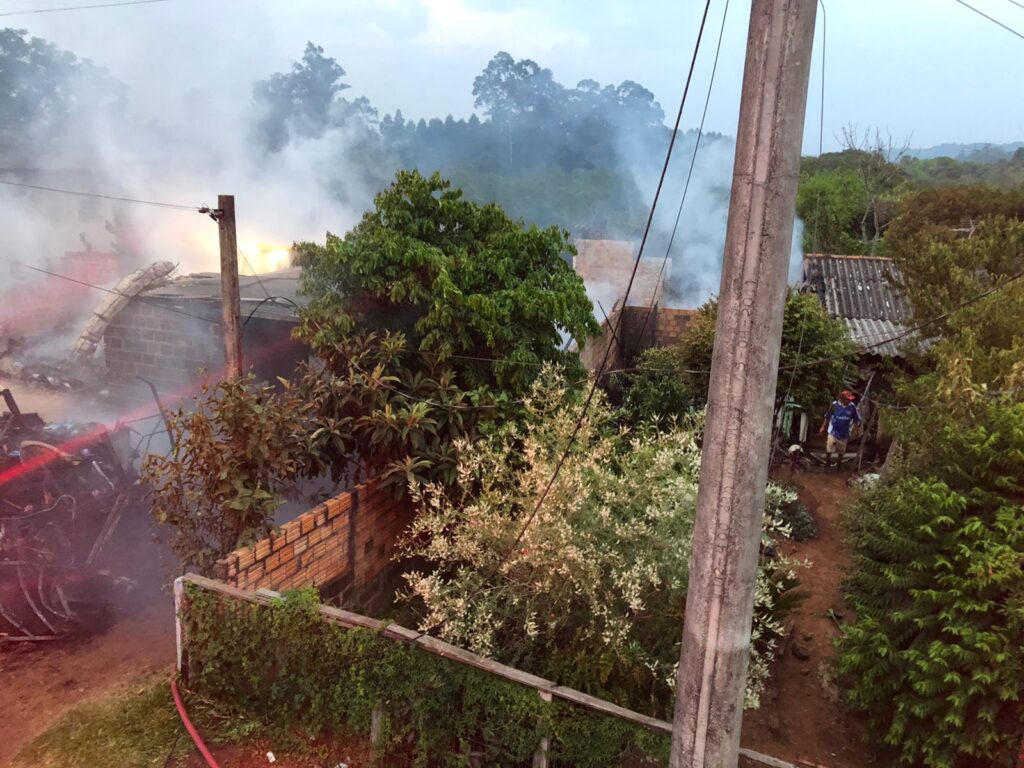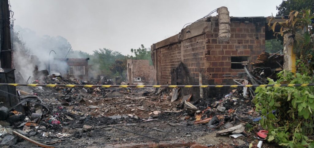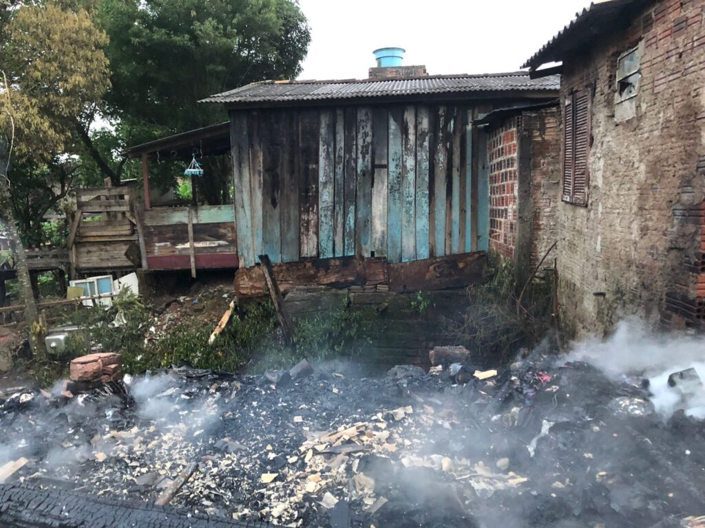 Diferente do que foi informado em outra matéria, as autoridades de segurança pública confirmaram o número de sete casas destruídas durante um incêndio, ocorrido na madrugada desta terça-feira (14), em Taquara.