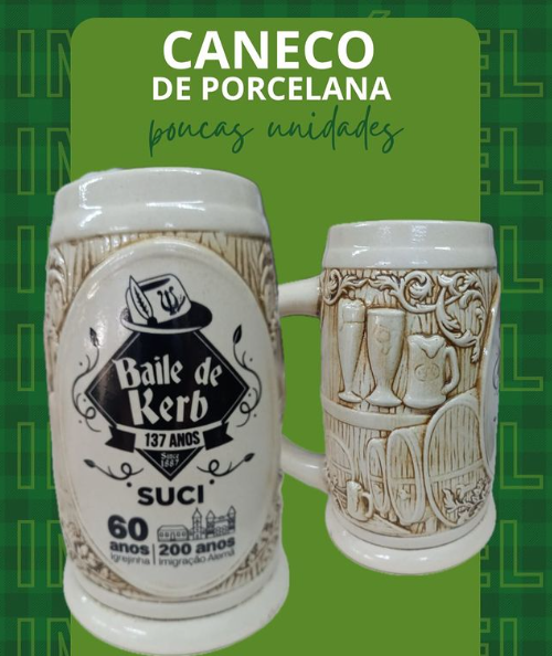 Para marcar o aniversário de 137 anos da Suci, 60 anos de emancipação de Igrejinha e 200 anos de imigração alemã, será comercializado um caneco de porcelana colecionável. O valor é R$ 90,00 e, no baile, ele será entregue cheio de chopp. São poucas unidades.