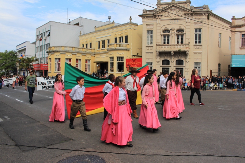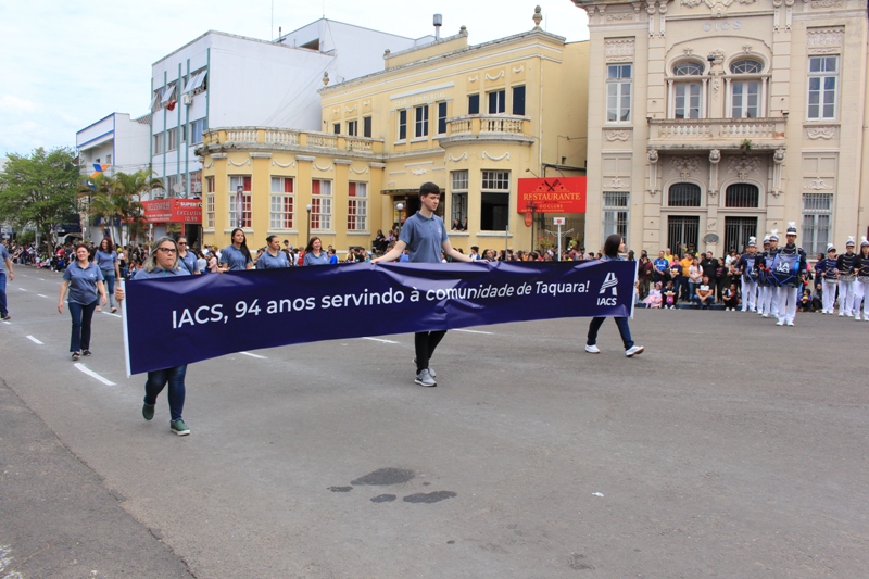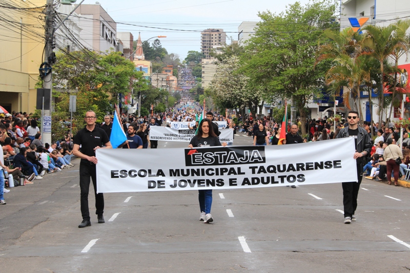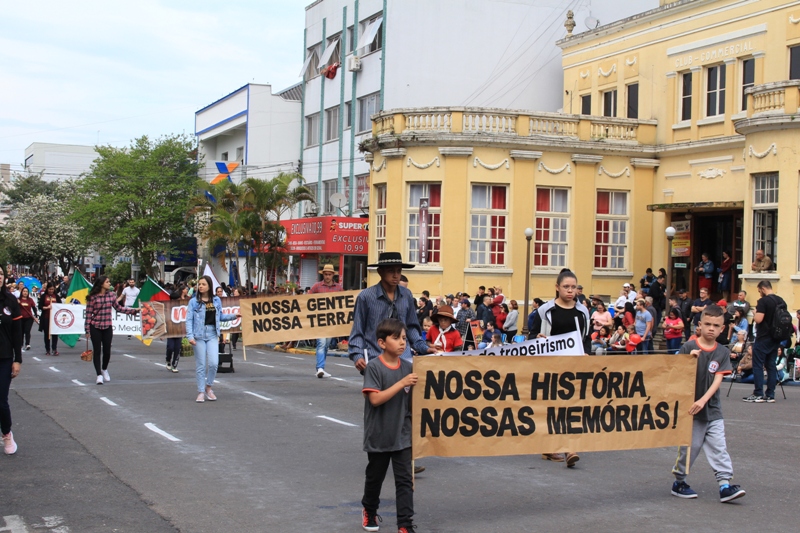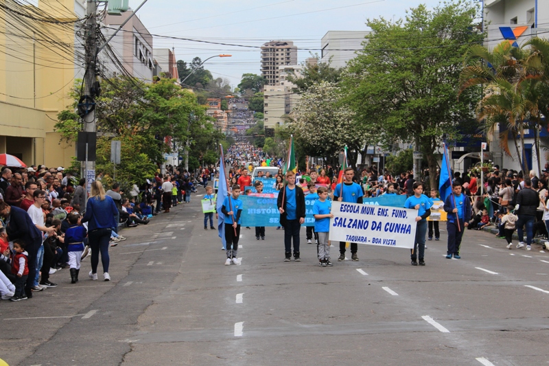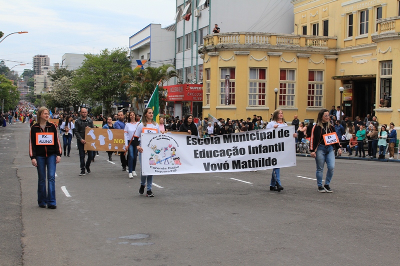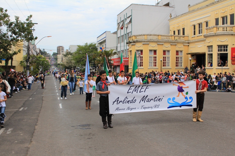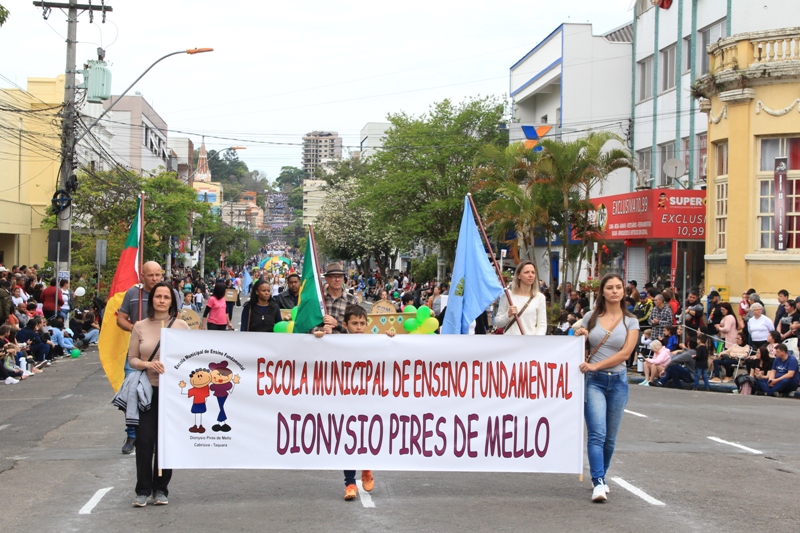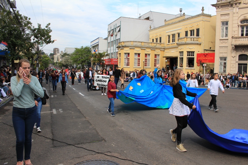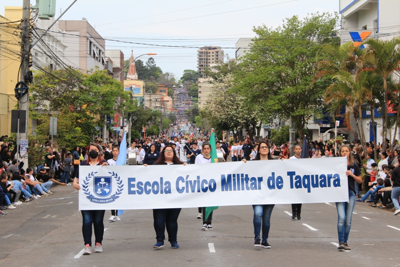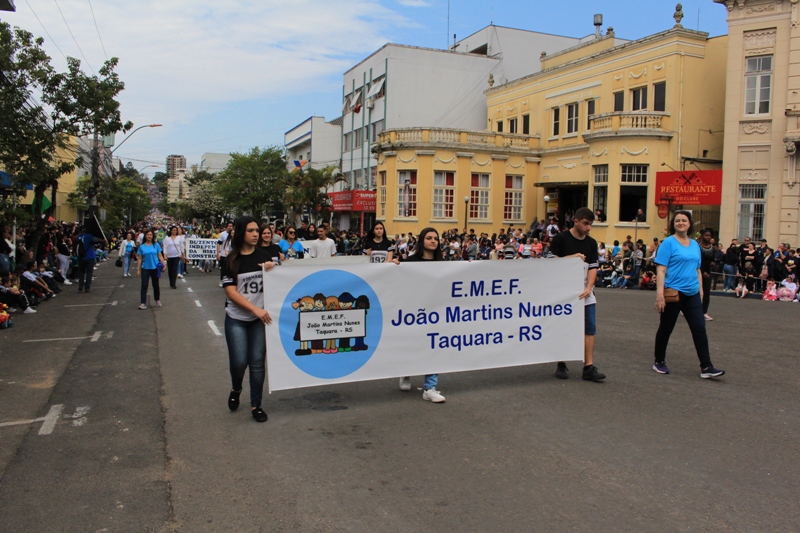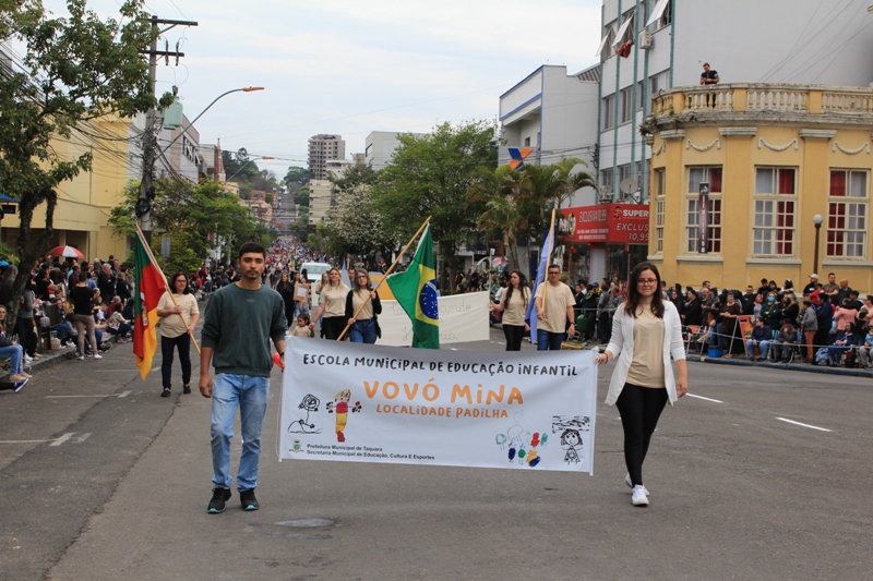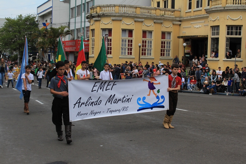Após a abertura oficial do evento, que contou com a presença da prefeita Sirlei Silveira e outras autoridades municipais, o desfile teve início com a passagem dos veículos das forças de segurança de Taquara. Logo em seguida, os alunos, professores e funcionários das escolas das três redes de ensino do Município passaram pela Júlio de Castilhos, seguidos pelos representantes de entidades, como os Centros de Tradições Gaúchas (CTGs) de Taquara, Rotary Club, Lions Clube, ONG Vida Breve, Desbravadores, além das bandas marciais.