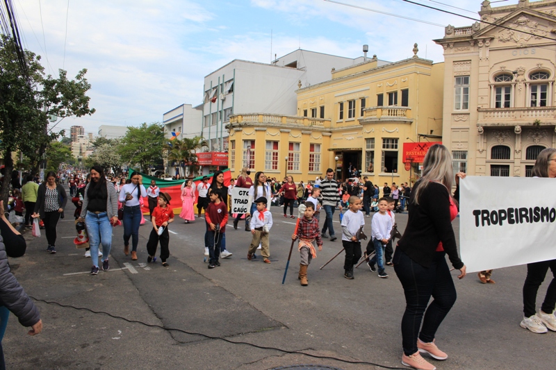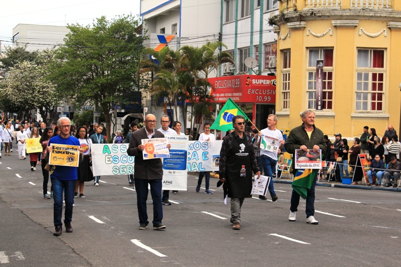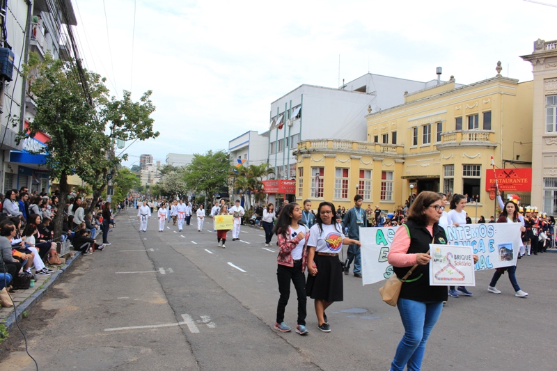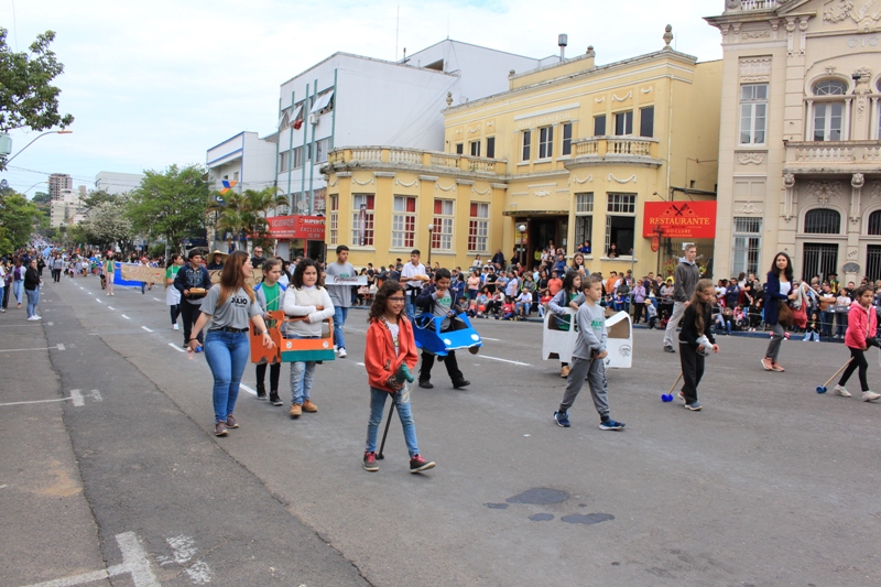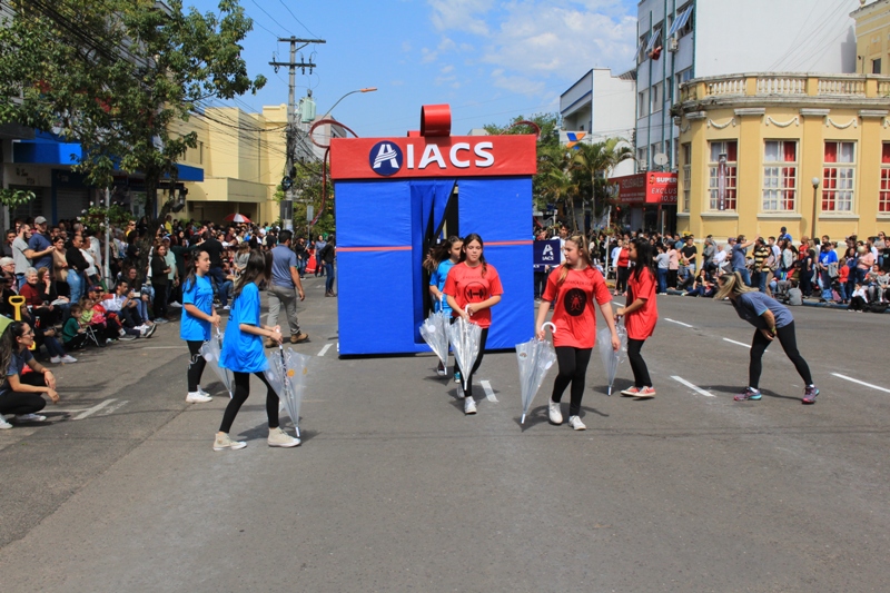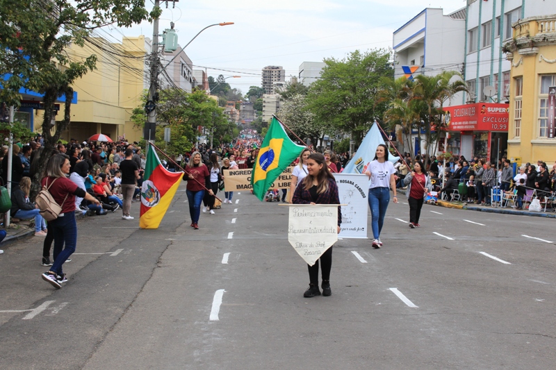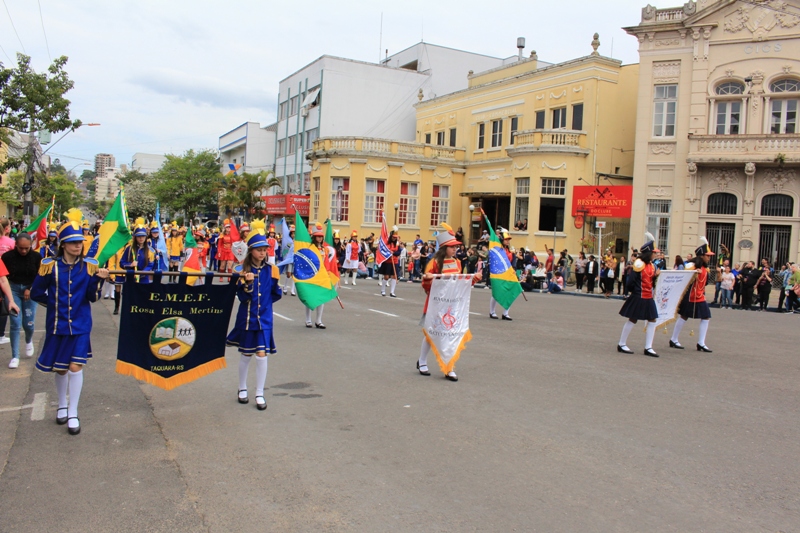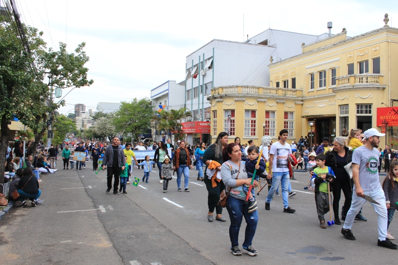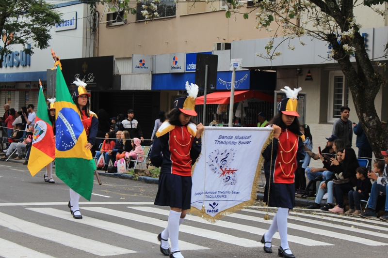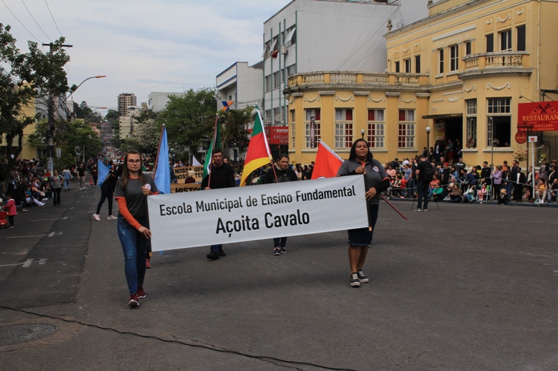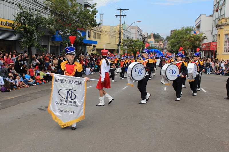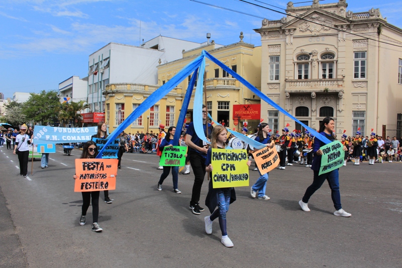 Após a abertura oficial do evento, que contou com a presença da prefeita Sirlei Silveira e outras autoridades municipais, o desfile teve início com a passagem dos veículos das forças de segurança de Taquara. Logo em seguida, os alunos, professores e funcionários das escolas das três redes de ensino do Município passaram pela Júlio de Castilhos, seguidos pelos representantes de entidades, como os Centros de Tradições Gaúchas (CTGs) de Taquara, Rotary Club, Lions Clube, ONG Vida Breve, Desbravadores, além das bandas marciais.