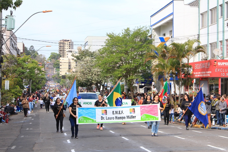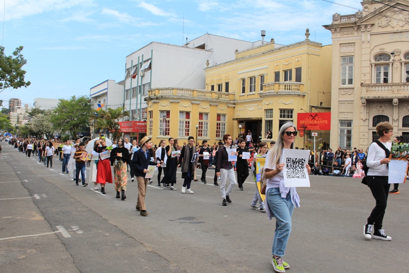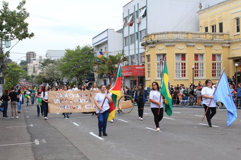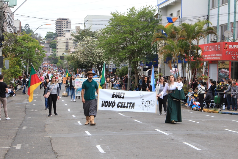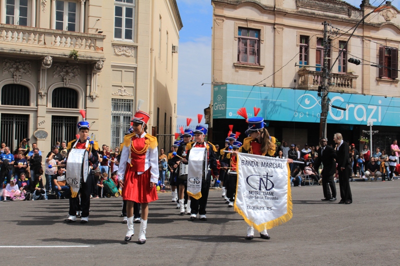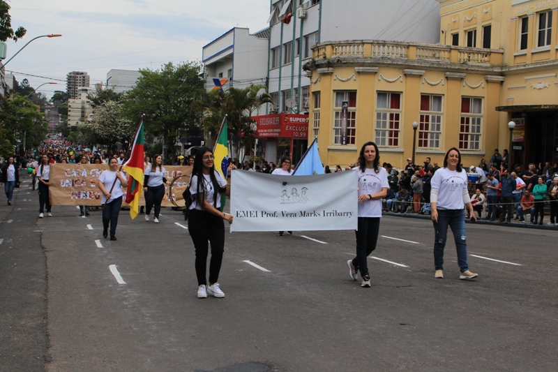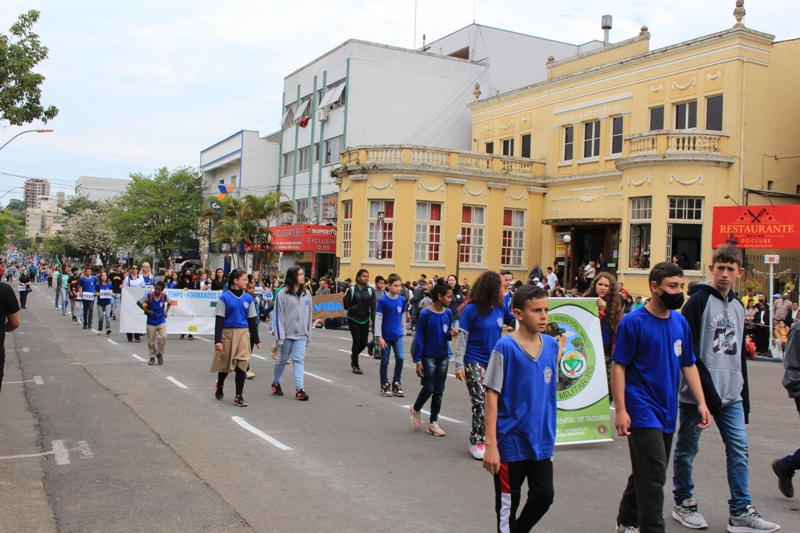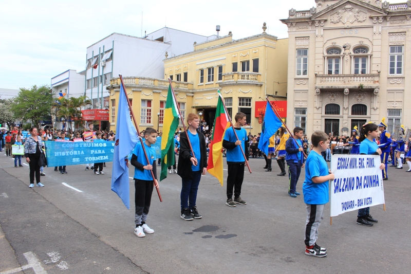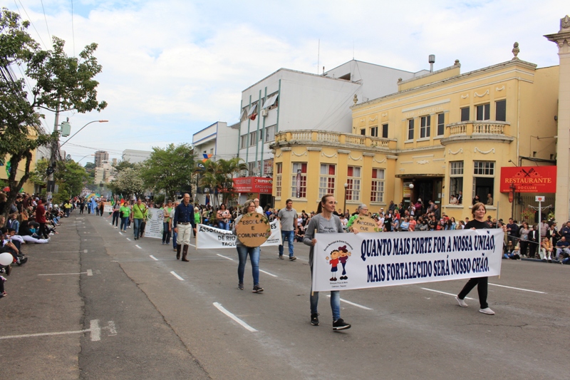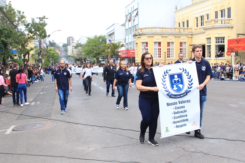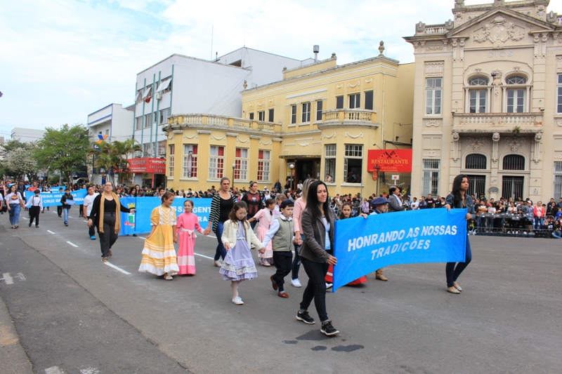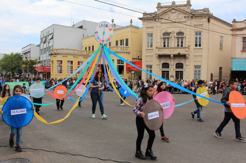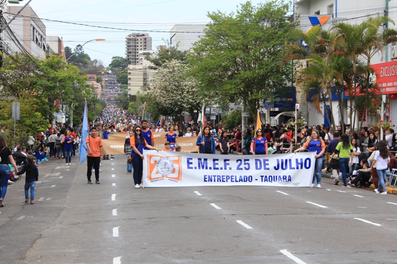 Após a abertura oficial do evento, que contou com a presença da prefeita Sirlei Silveira e outras autoridades municipais, o desfile teve início com a passagem dos veículos das forças de segurança de Taquara. Logo em seguida, os alunos, professores e funcionários das escolas das três redes de ensino do Município passaram pela Júlio de Castilhos, seguidos pelos representantes de entidades, como os Centros de Tradições Gaúchas (CTGs) de Taquara, Rotary Club, Lions Clube, ONG Vida Breve, Desbravadores, além das bandas marciais.