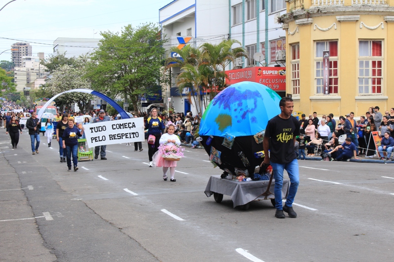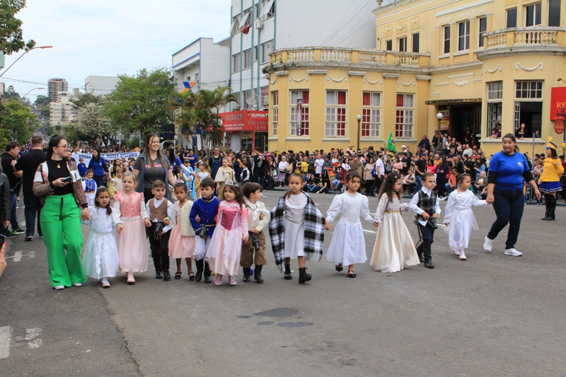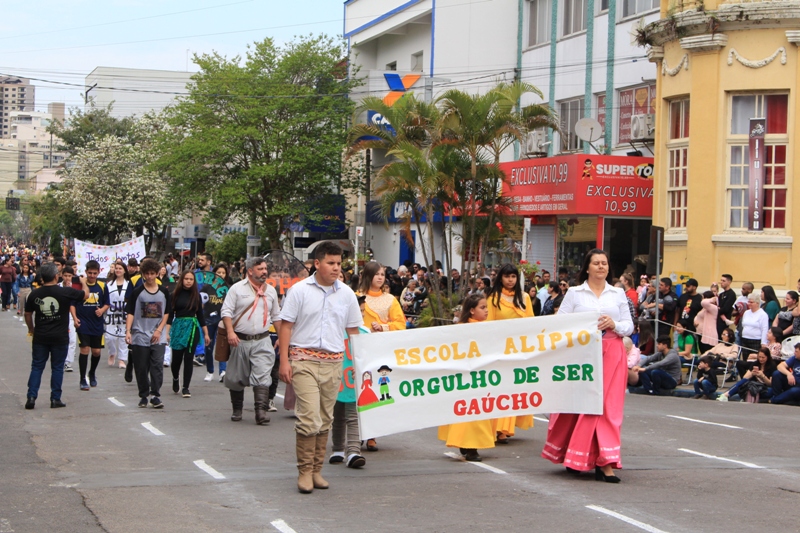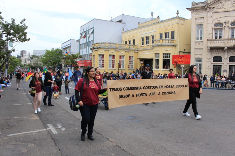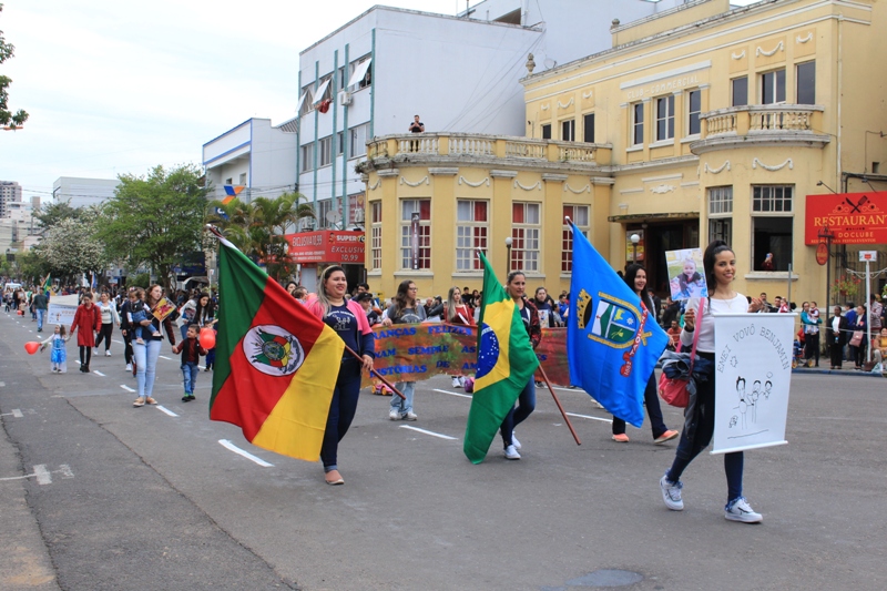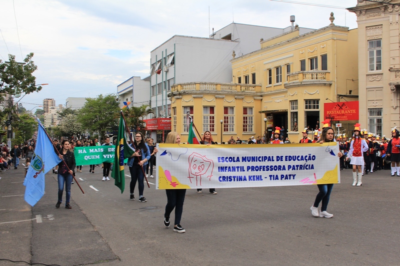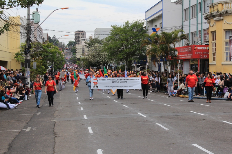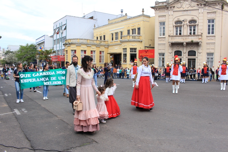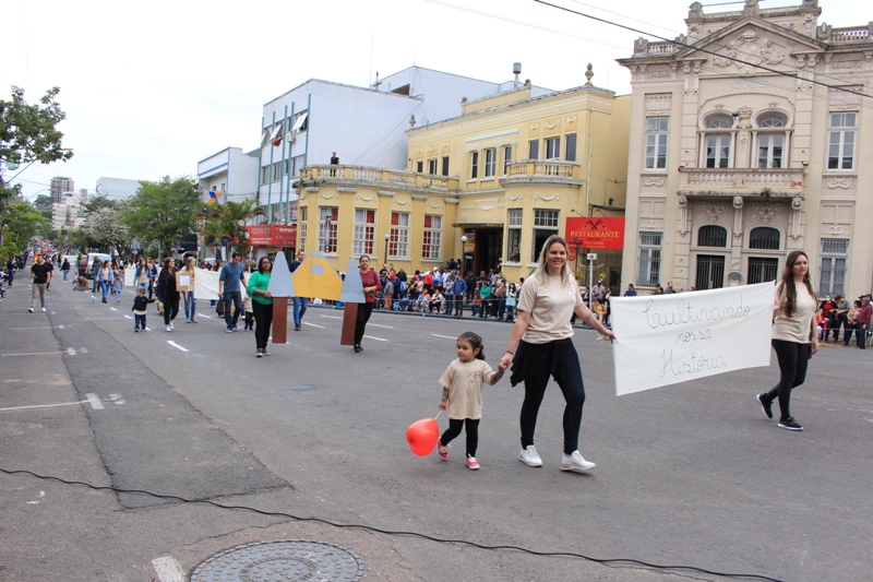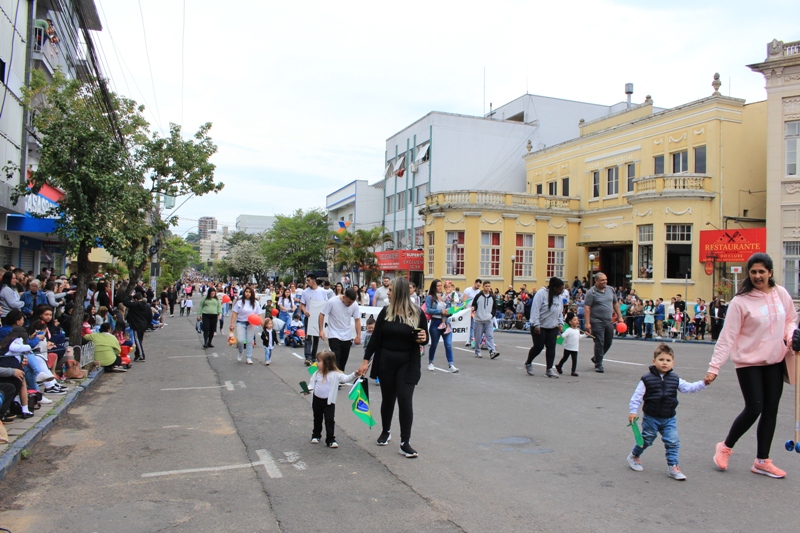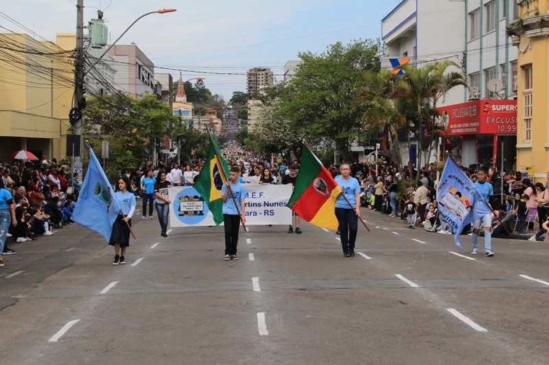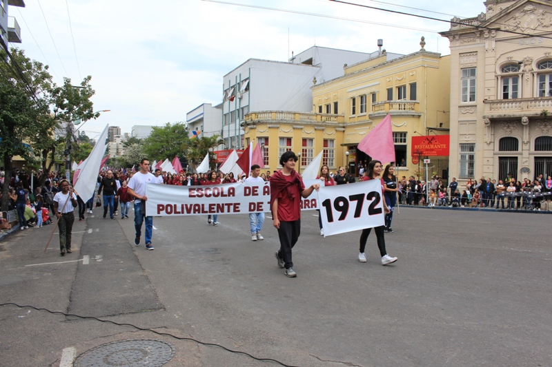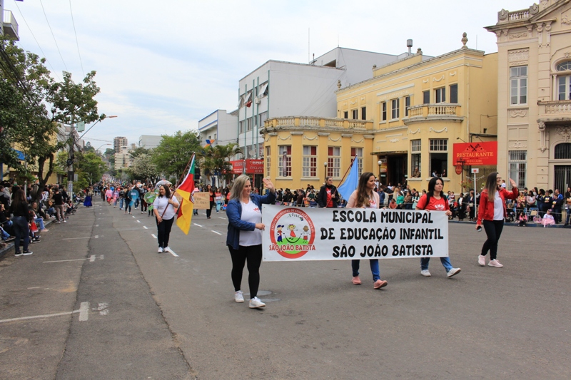 Após a abertura oficial do evento, que contou com a presença da prefeita Sirlei Silveira e outras autoridades municipais, o desfile teve início com a passagem dos veículos das forças de segurança de Taquara. Logo em seguida, os alunos, professores e funcionários das escolas das três redes de ensino do Município passaram pela Júlio de Castilhos, seguidos pelos representantes de entidades, como os Centros de Tradições Gaúchas (CTGs) de Taquara, Rotary Club, Lions Clube, ONG Vida Breve, Desbravadores, além das bandas marciais.