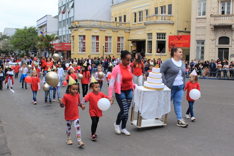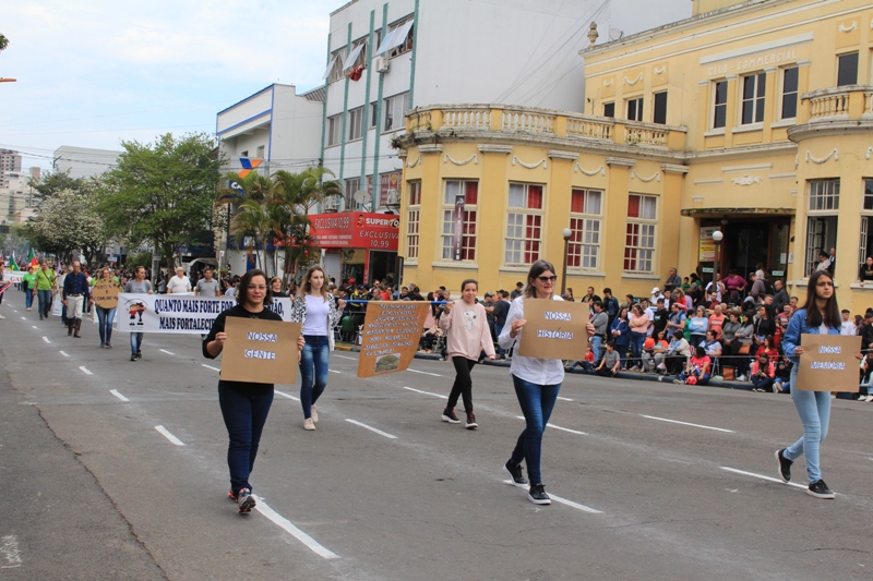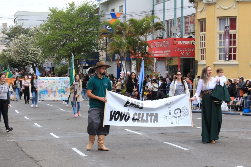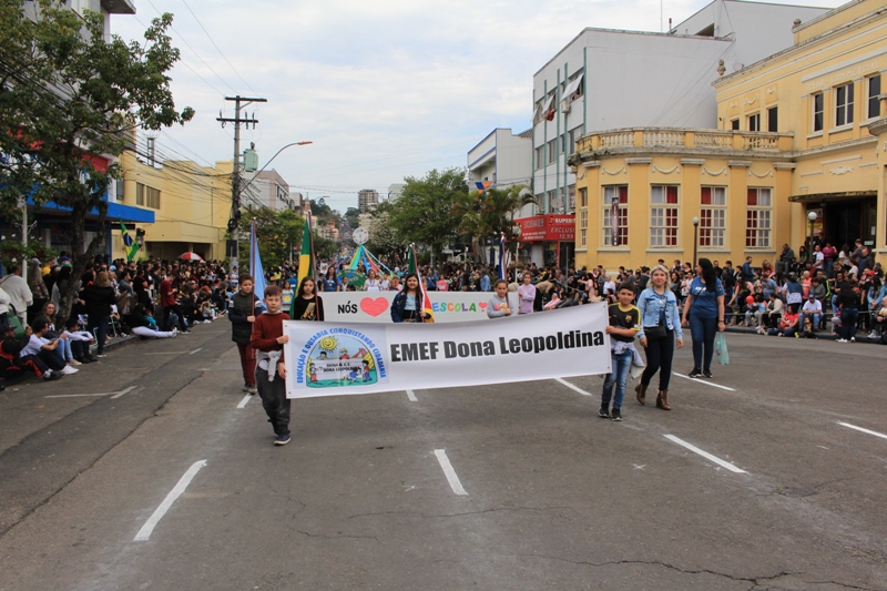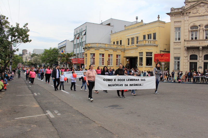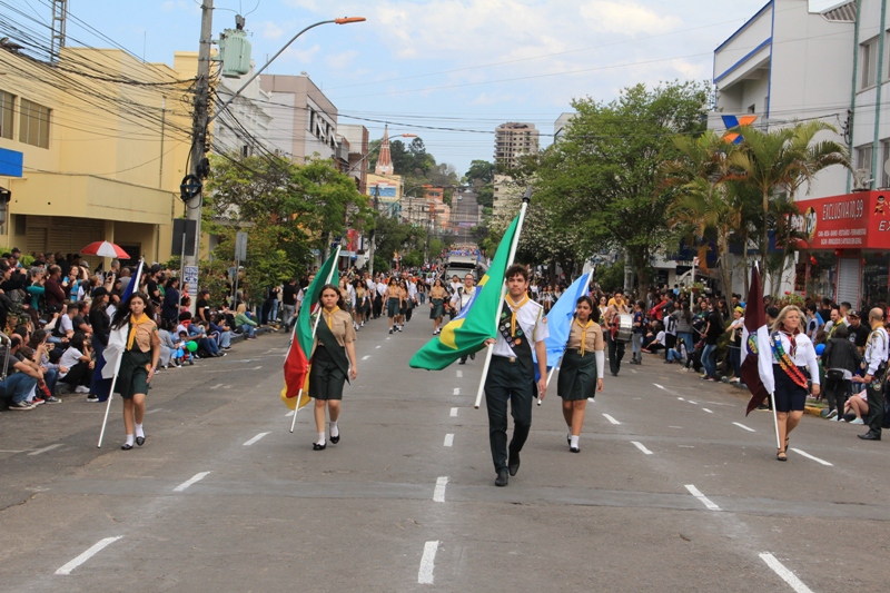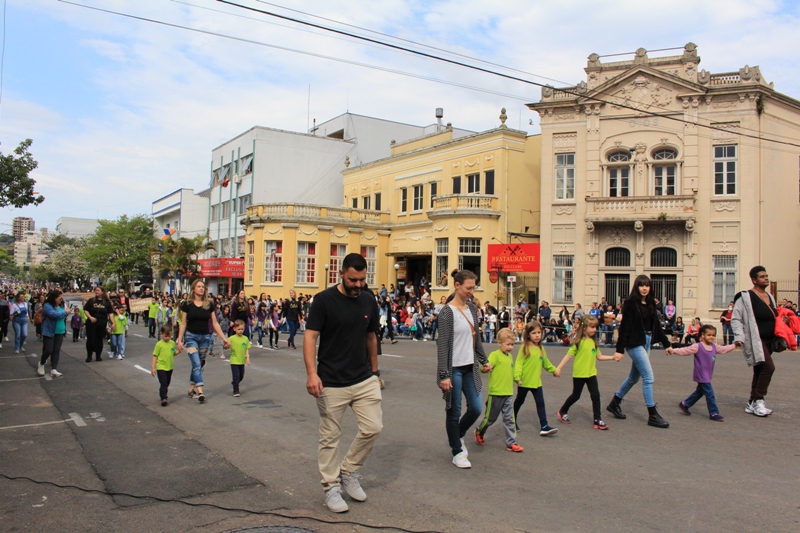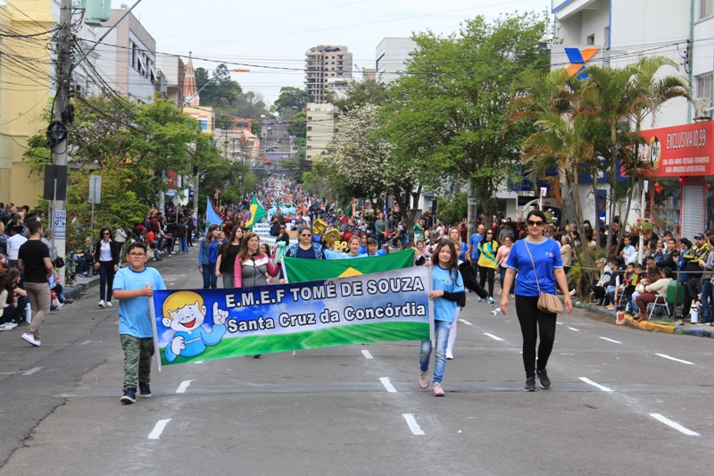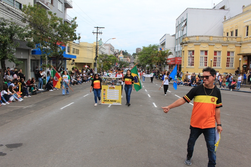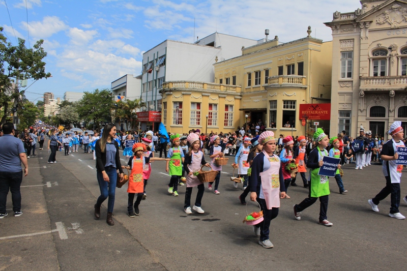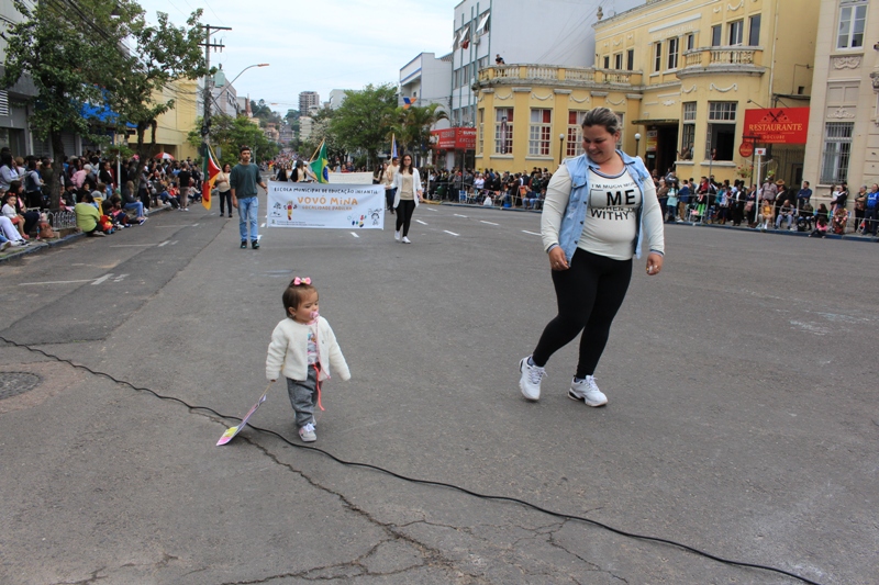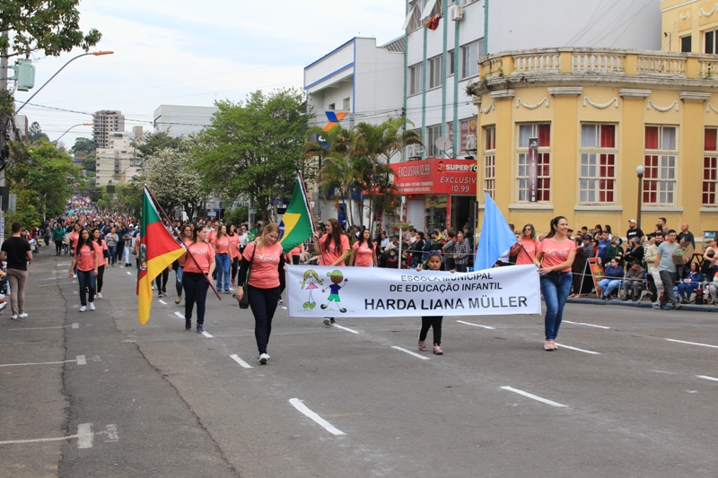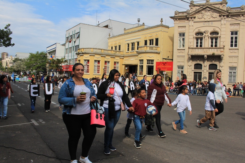 Após a abertura oficial do evento, que contou com a presença da prefeita Sirlei Silveira e outras autoridades municipais, o desfile teve início com a passagem dos veículos das forças de segurança de Taquara. Logo em seguida, os alunos, professores e funcionários das escolas das três redes de ensino do Município passaram pela Júlio de Castilhos, seguidos pelos representantes de entidades, como os Centros de Tradições Gaúchas (CTGs) de Taquara, Rotary Club, Lions Clube, ONG Vida Breve, Desbravadores, além das bandas marciais.