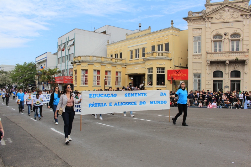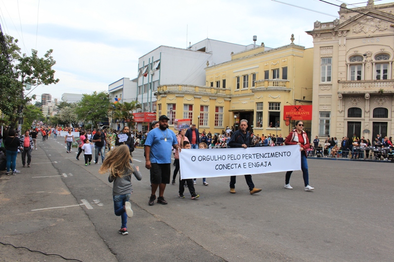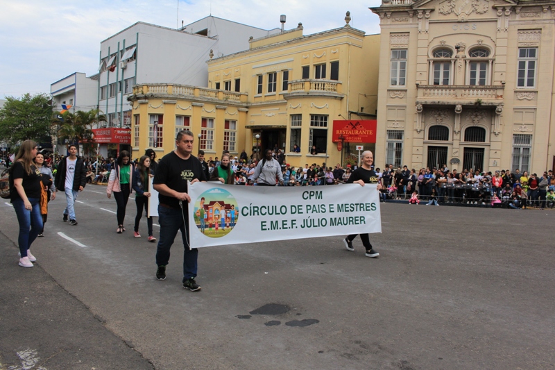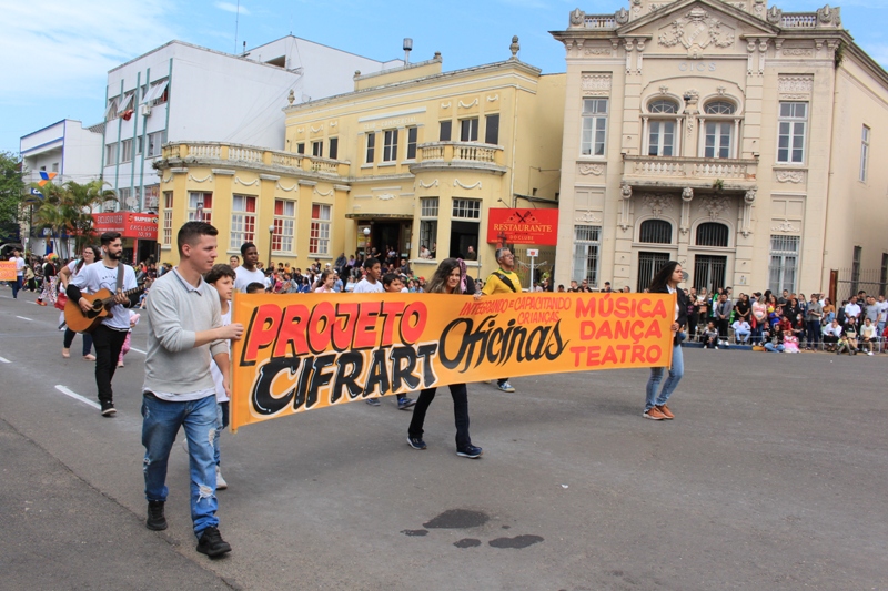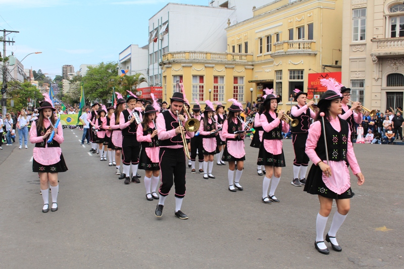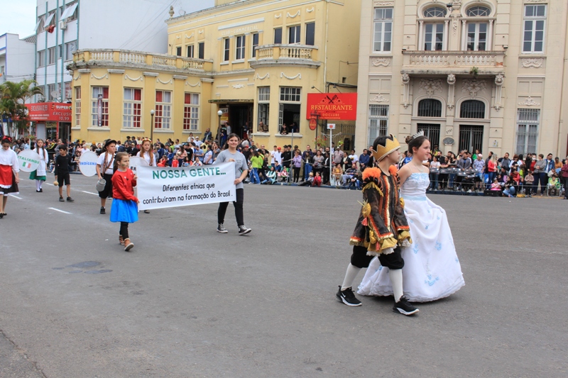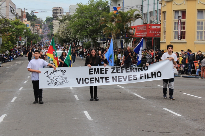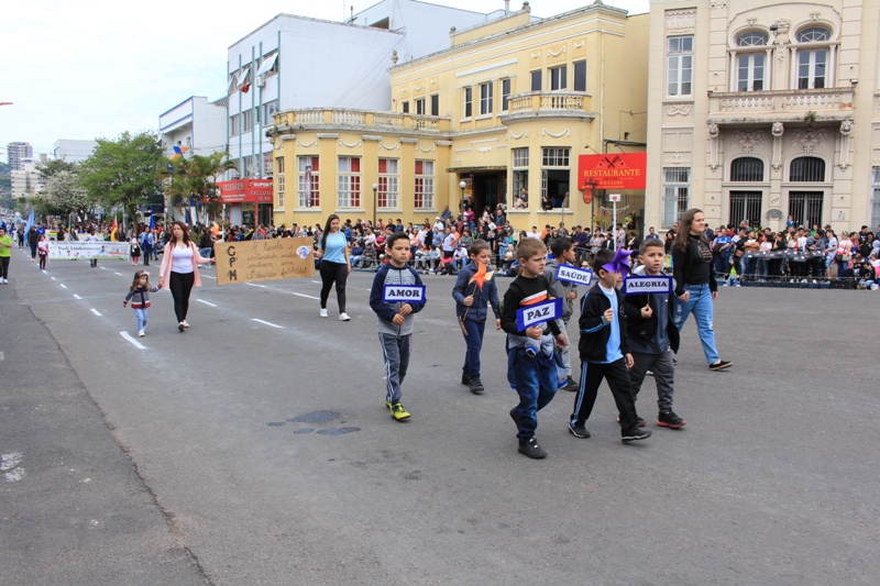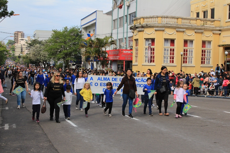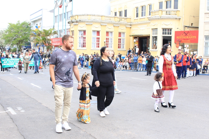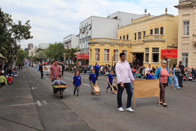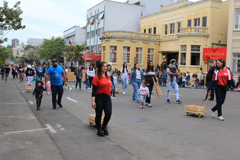 Após a abertura oficial do evento, que contou com a presença da prefeita Sirlei Silveira e outras autoridades municipais, o desfile teve início com a passagem dos veículos das forças de segurança de Taquara. Logo em seguida, os alunos, professores e funcionários das escolas das três redes de ensino do Município passaram pela Júlio de Castilhos, seguidos pelos representantes de entidades, como os Centros de Tradições Gaúchas (CTGs) de Taquara, Rotary Club, Lions Clube, ONG Vida Breve, Desbravadores, além das bandas marciais.