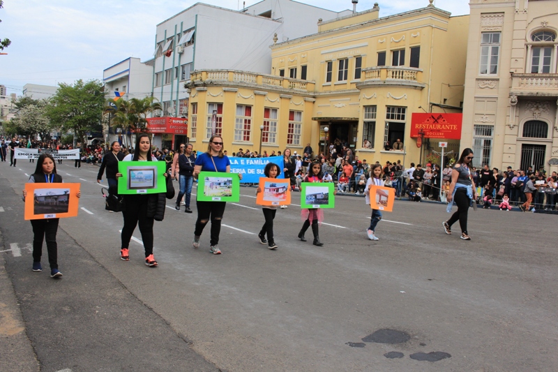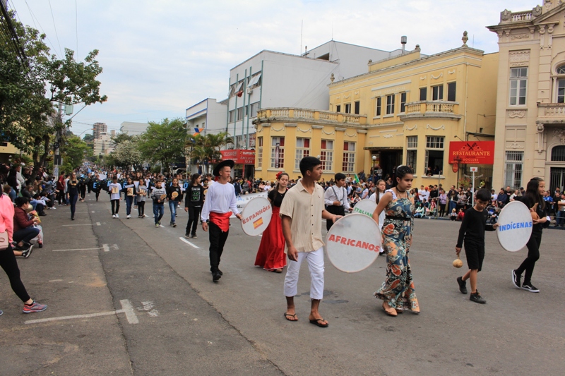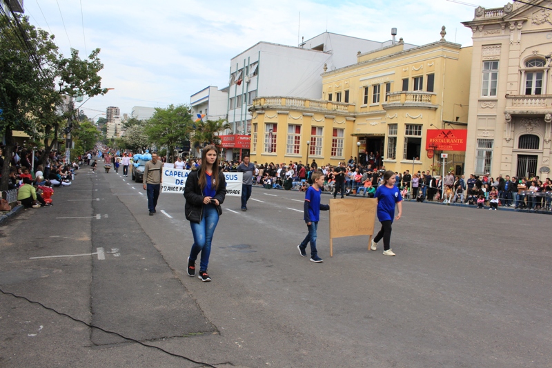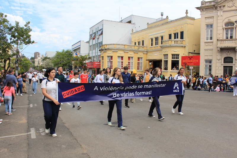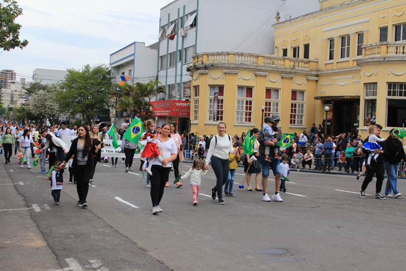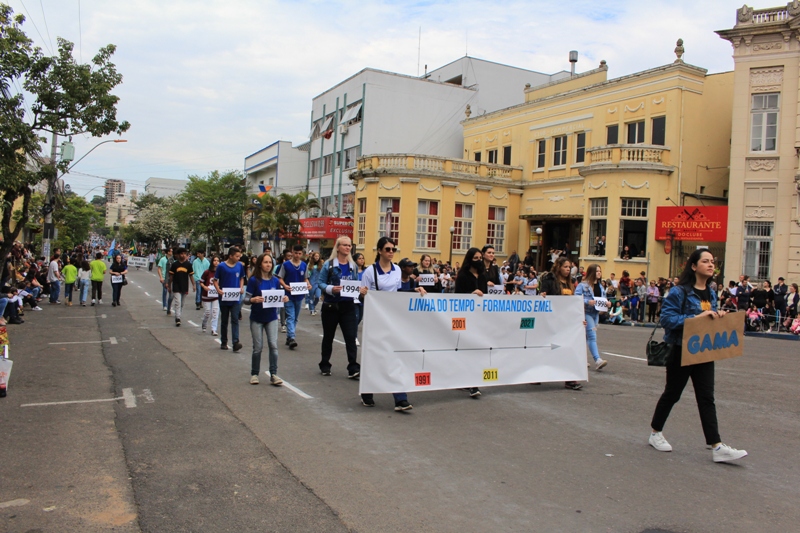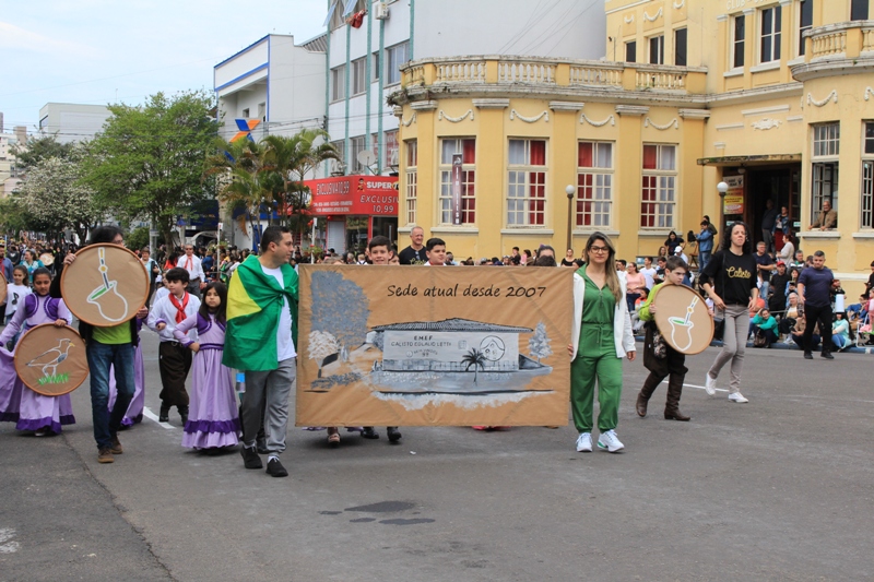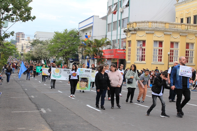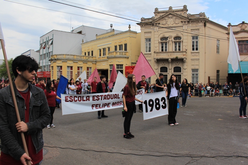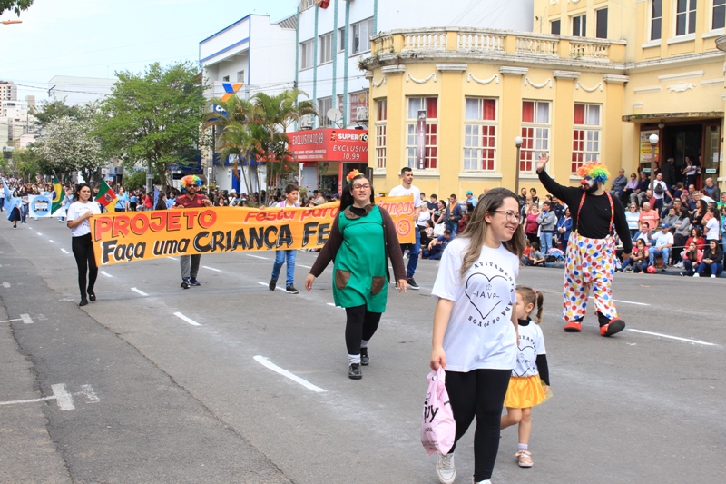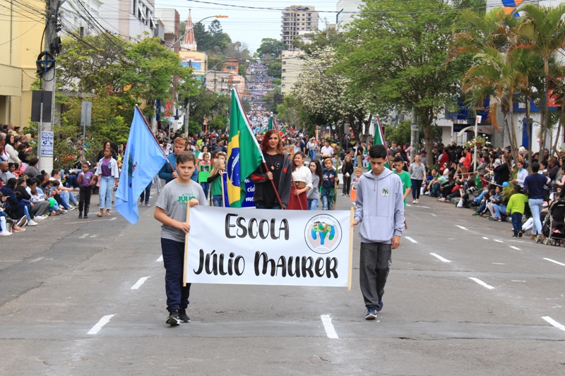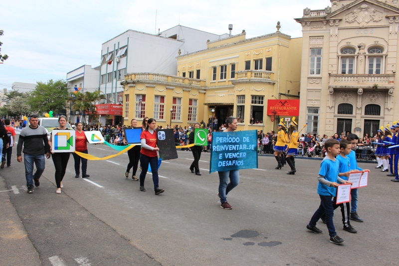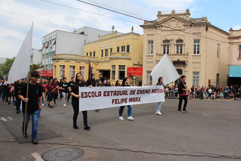 Após a abertura oficial do evento, que contou com a presença da prefeita Sirlei Silveira e outras autoridades municipais, o desfile teve início com a passagem dos veículos das forças de segurança de Taquara. Logo em seguida, os alunos, professores e funcionários das escolas das três redes de ensino do Município passaram pela Júlio de Castilhos, seguidos pelos representantes de entidades, como os Centros de Tradições Gaúchas (CTGs) de Taquara, Rotary Club, Lions Clube, ONG Vida Breve, Desbravadores, além das bandas marciais.