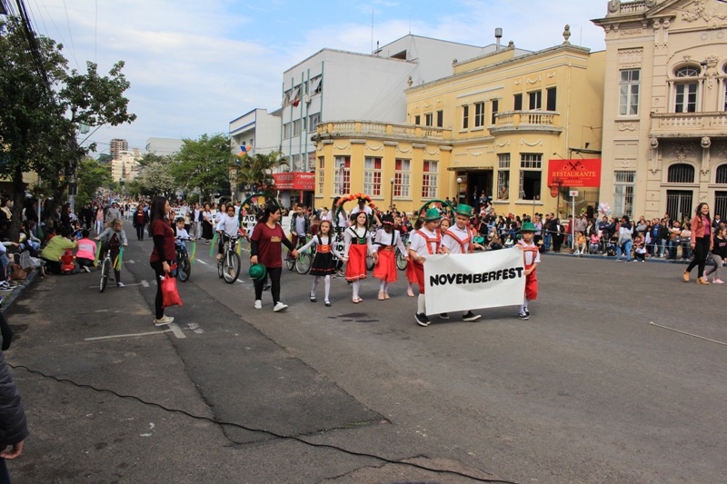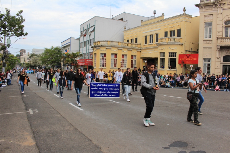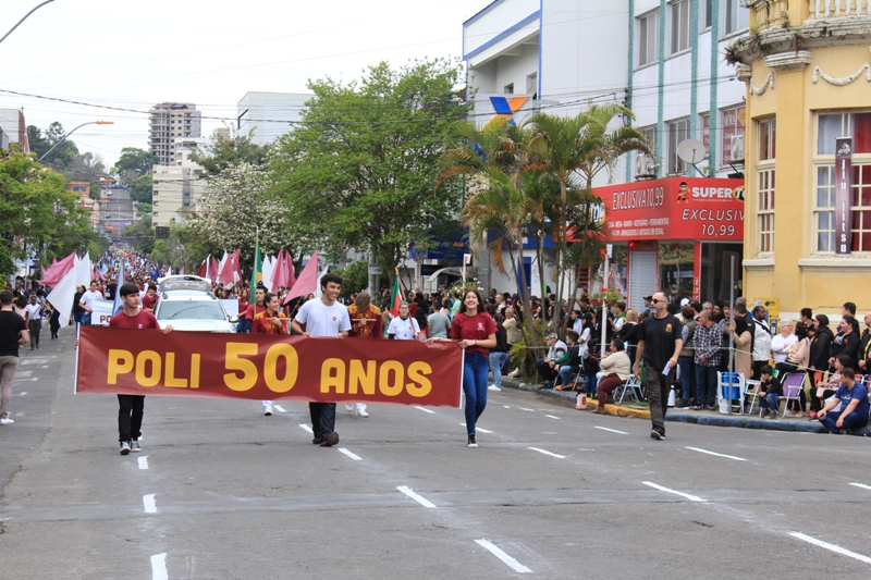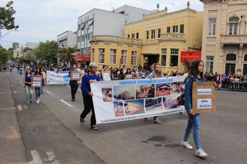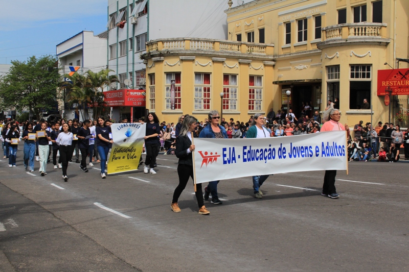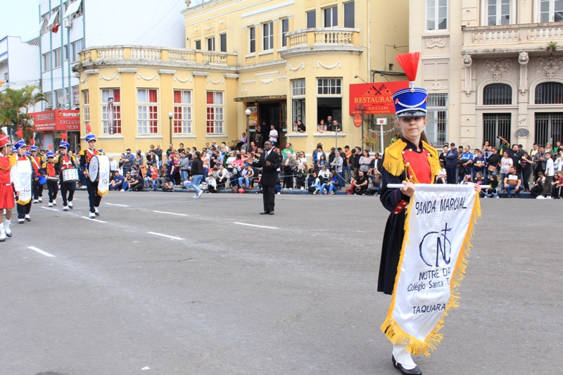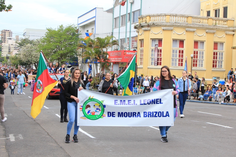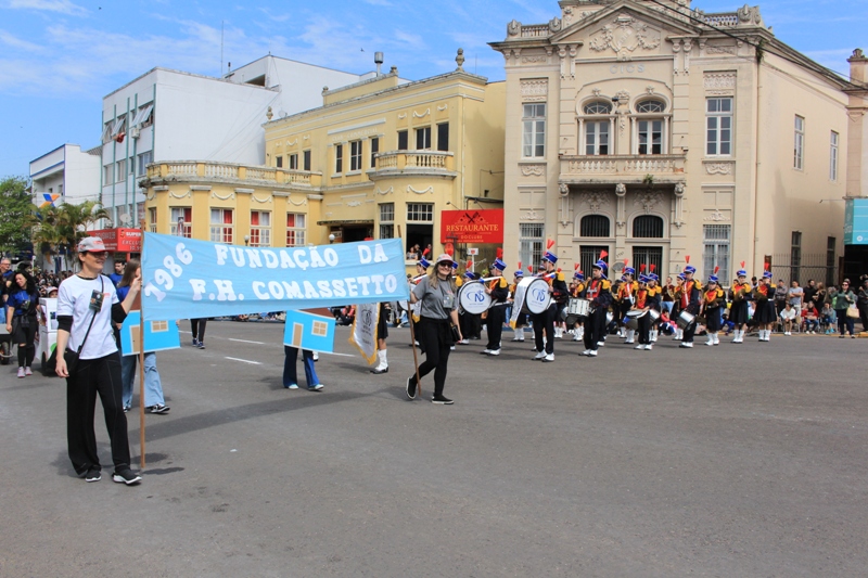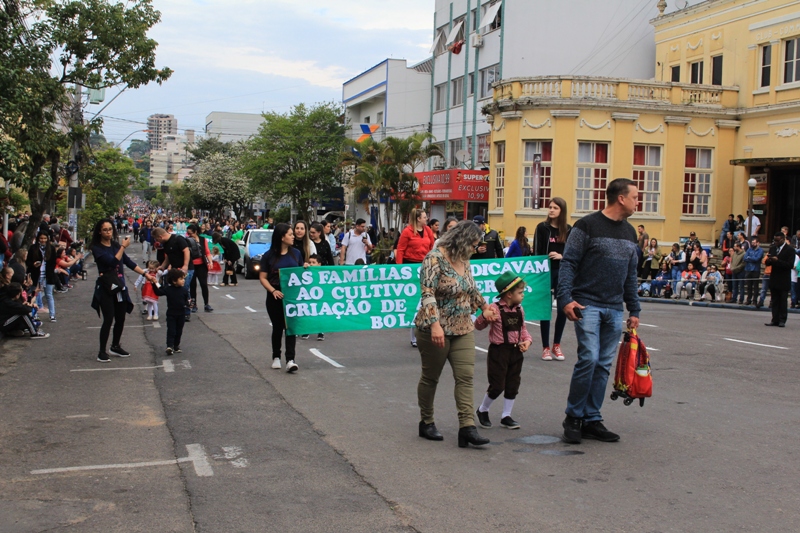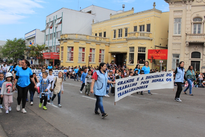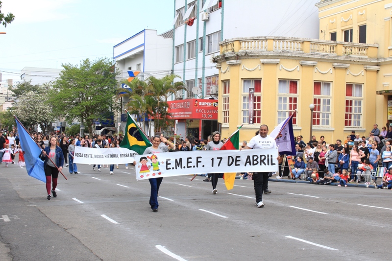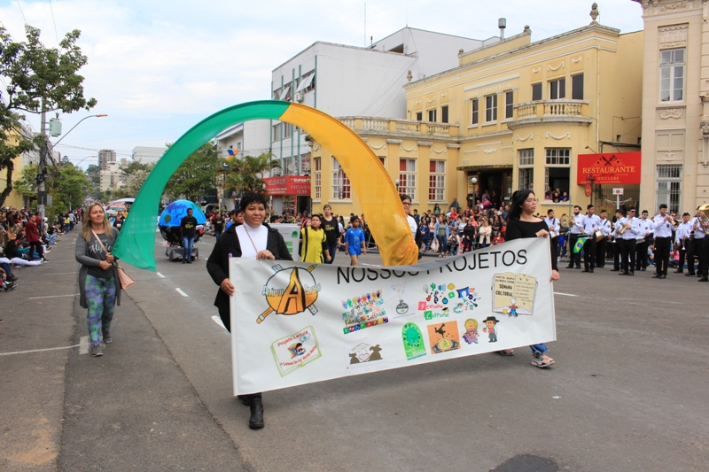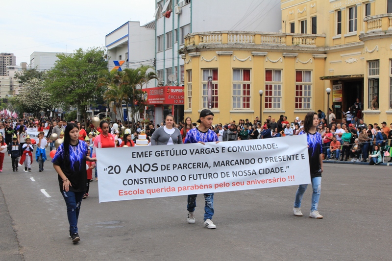 Após a abertura oficial do evento, que contou com a presença da prefeita Sirlei Silveira e outras autoridades municipais, o desfile teve início com a passagem dos veículos das forças de segurança de Taquara. Logo em seguida, os alunos, professores e funcionários das escolas das três redes de ensino do Município passaram pela Júlio de Castilhos, seguidos pelos representantes de entidades, como os Centros de Tradições Gaúchas (CTGs) de Taquara, Rotary Club, Lions Clube, ONG Vida Breve, Desbravadores, além das bandas marciais.