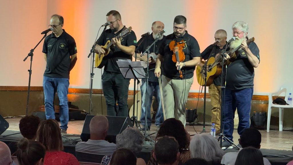Formado por Flávio Ramos, em parceria com seu filho Flávio Eduardo Ramos, além de Maicon Michelon e seu pai Marco André Borba, e contando ainda com os músicos Enedir da Silva e Jorge do Cavaco, o Terno de Reis Pais & Filhos encantou o público com um repertório que mesclou cantorias tradicionais do Terno de Reis e outros formatos musicais. A apresentação alternou performances em dupla, solos instrumentais, declamações e interpretações do repertório popular, reforçando a riqueza da cultura popular brasileira.