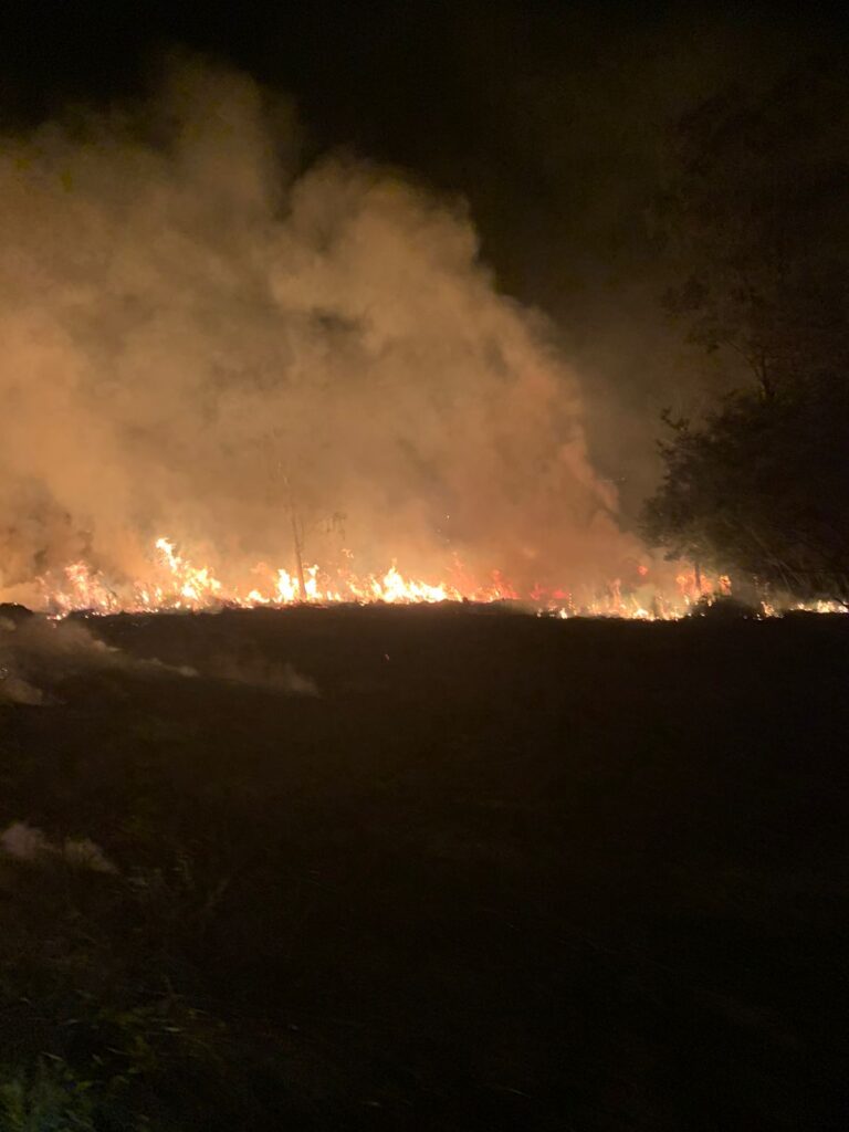Por volta de 20h, o Corpo de Bombeiros Militar de Taquara foi acionado até a localidade de Santa Cruz da Concórdia, numa área de terras nos fundos da Sociedade Concórdia, para combater às chamas em um matagal.