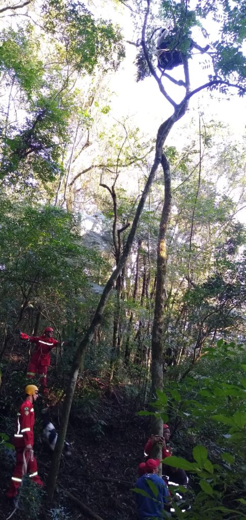 Bombeiros Voluntários resgatam piloto de paraglider que ficou preso em árvore em Rolante