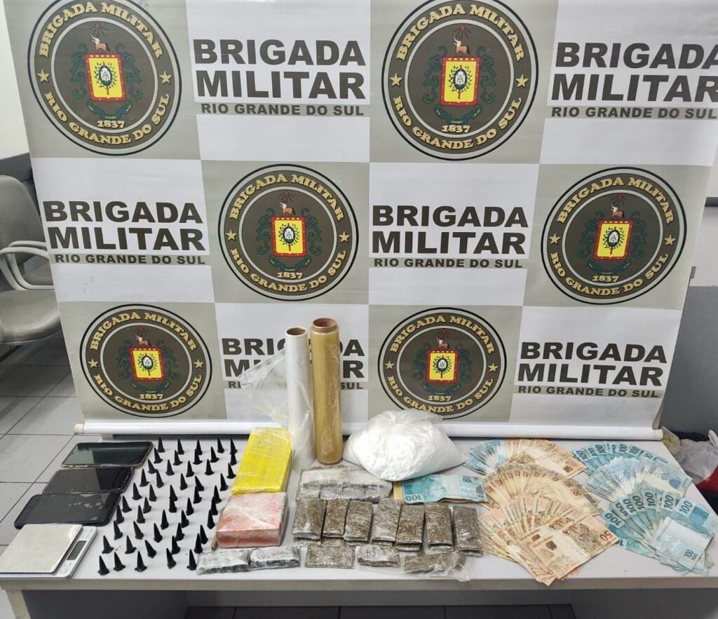 Conforme a Brigada Militar (BM) de Parobé, durante a abordagem foi encontrado dentro da mochila um quilo de maconha, um quilo de cocaína, uma balança de precisão e um rolo de papel filme em uma pochete, além de dez tabletes de maconha e 70 pinos de cocaína, prontos para a venda, R$ 6.200,00 em espécie e três celulares.