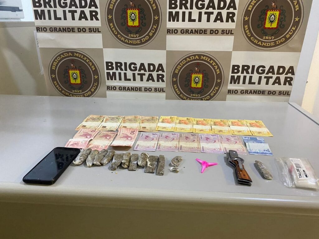 Na noite de segunda-feira (22), a Brigada Militar (BM) de Taquara recapturou um foragido da Justiça e prendeu outro homem por tráfico de drogas. A dupla foi abordada na rua Flores da Cunha, em um local conhecido pela comercialização de entorpecentes, no bairro Tucanos. Na revista pessoal, os policiais militares localizaram 12 porções de maconha, três pinos de cocaína e R$ 377 em dinheiro.