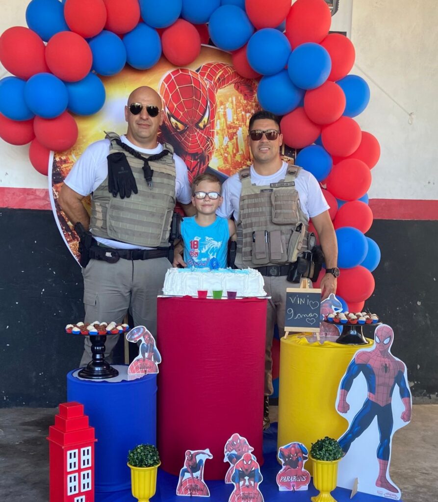 Na tarde deste sábado (18), a Brigada Militar (BM) de Taquara fez uma surpresa ao menino Vinicius Martins dos Passos da Rosa, ao aparecer em sua festa de aniversário, de nove anos. Cientes da admiração que Vinicius tem pelo trabalho da BM, seus pais, Edson da Rosa e Patricia Martins dos Passos da Rosa, entraram em contato com o quartel em Taquara e fizeram o convite a corporação.