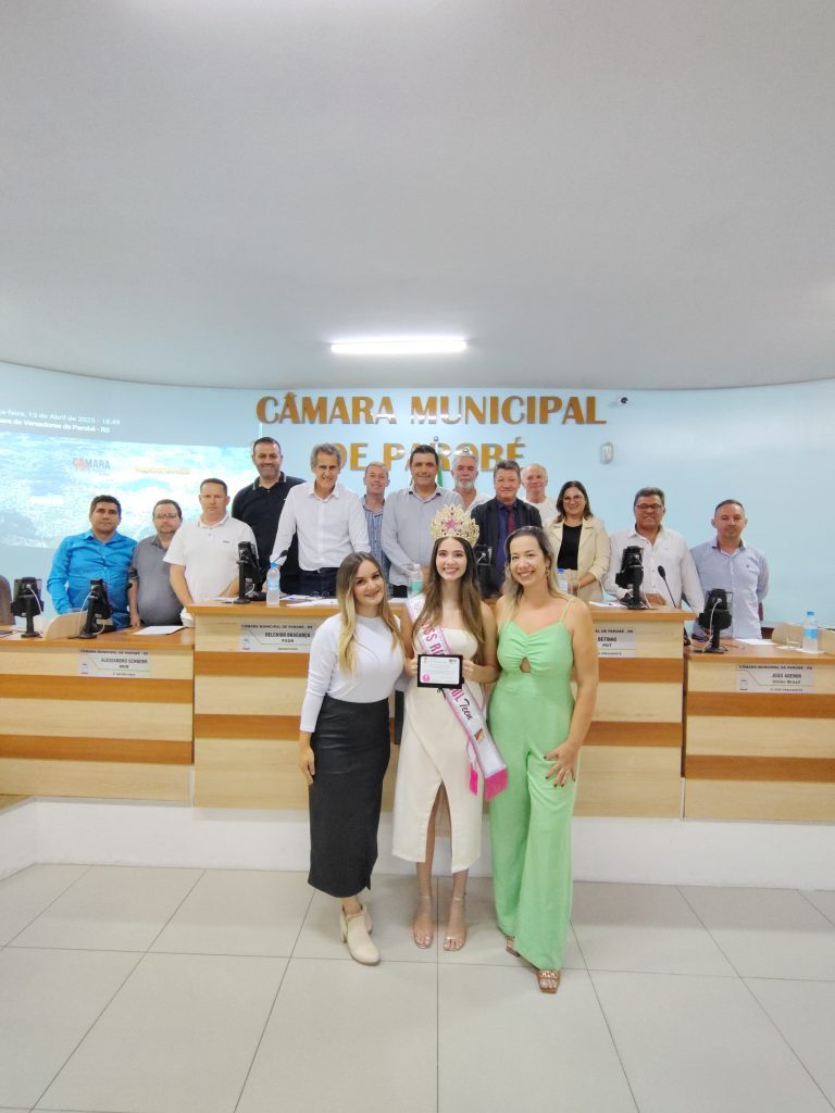 A Câmara de Vereadores de Parobé prestou durante sua sessão ordinária desta semana uma homenagem a Taissa Andrade Miranda Silva, Miss Rio Grande do Sul Teen 2025. Em sua fala no plenário, Taissa expressou sua felicidade em representar a cidade de Parobé, agradecendo a todos os vereadores pelo carinho e recepção.