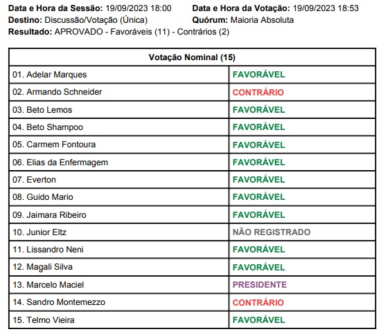 O projeto foi proposto pela administração municipal. Em contrapartida aos incentivos, a empresa se compromete a continuar realizando os serviços de transporte na localidade do interior. A proposta foi aprovada com 11 votos favoráveis e dois contrários.
