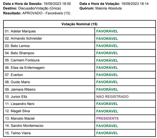 O projeto foi proposto pela administração municipal. Em contrapartida ao incentivo, a associação deverá empregar a verba no transporte, manutenção e despesas gerais da entidade. A proposta foi aprovada por unanimidade pelos vereadores.
