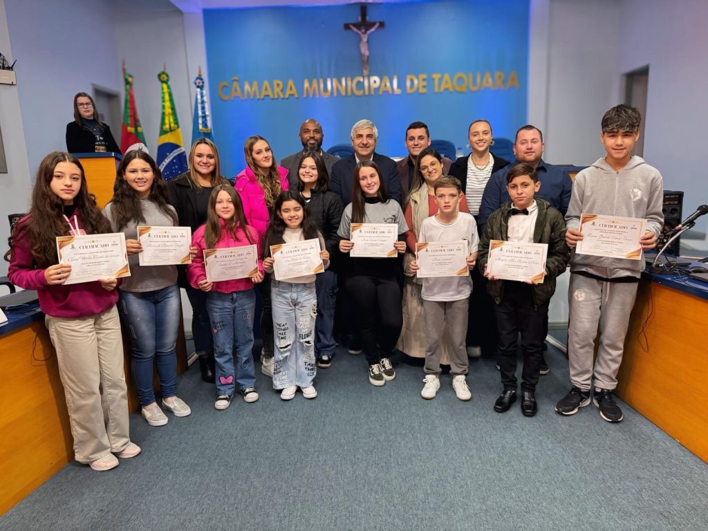 Na manhã desta segunda feira (12), a Câmara de Vereadores de Taquara realizou a cerimônia de posse dos novos Vereadores Mirins, em um momento especial de incentivo à cidadania e à participação política dos jovens.