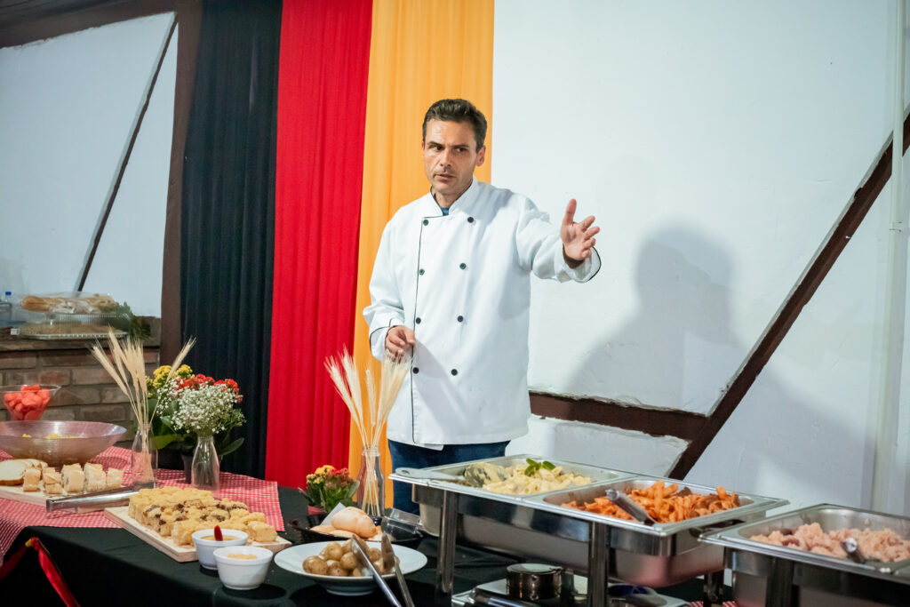 O cardápio do espaço é assinado e será executado por Leonardo Teodoro Lincke, chef de cozinha e empresário do ramo da Gastronomia, que está nessa responsabilidade pelo oitavo ano. “O espírito da festa é cultivar as tradições e a comida resgata a memória afetiva”, garante Lincke. O chef ainda antecipa que nesta edição o público poderá conferir e apreciar novidades. “Além de dois novos pratos no buffet, teremos um sanduíche especial, além de um prato para quem possui alguma restrição alimentar”, explica. Ao falar sobre a gastronomia germânica, Lincke detalha que geralmente trabalha empregando doce aos pratos salgados. “Isso traz bastante identificação”, avalia.