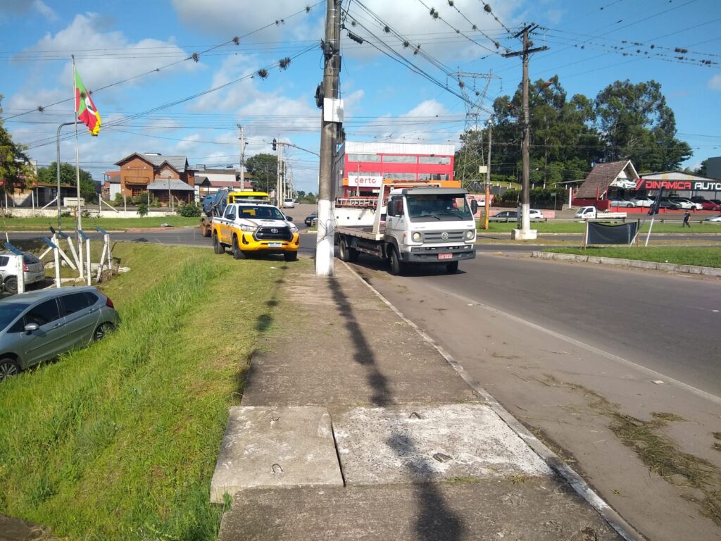 Na manhã desta sexta-feira (08), após um acidente envolvendo um caminhão, a condutora de um automóvel acabou caindo no canteiro lateral da ERS-239, em Taquara.