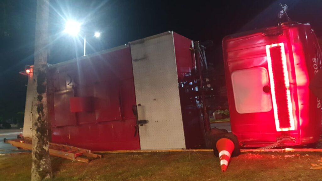 Na noite desta quarta-feira (11), por volta das 23h30min, o caminhão do Corpo de Bombeiros Voluntários de Três Coroas tombou, na região central do Município. De acordo com as informações, o motorista perdeu o controle após realizar uma curva na Avenida Santa Maria, em direção à ERS-115. O caminhão acabou virando na esquina onde está localizado o Trescopark. Ainda segundo as informações, apenas o condutor do caminhão teve escoriações leves e o veículo foi retirado do local em seguida.