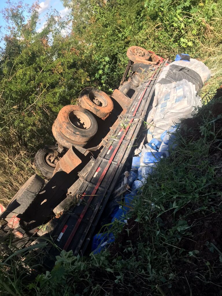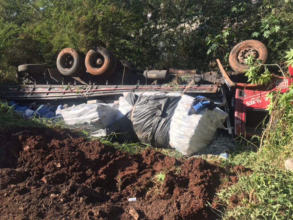 Caminhão que transportava material para a Corsan cai em ribanceira em Taquara