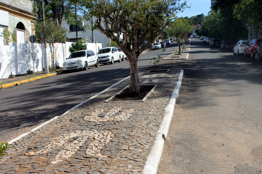 Dos 14 canteiros de pedras portuguesas, instalados no local na década de 1930, um foi retirado ainda em 2019. Ele ficava no cruzamento das ruas Dr. Edmundo Saft e General Emílio Lúcio Esteves. Pois quando construíram os canteiros não havia a rua General Emílio Lúcio Esteves e, com a abertura, o canteiro ficou em local impróprio atrapalhando a passagem de veículos.