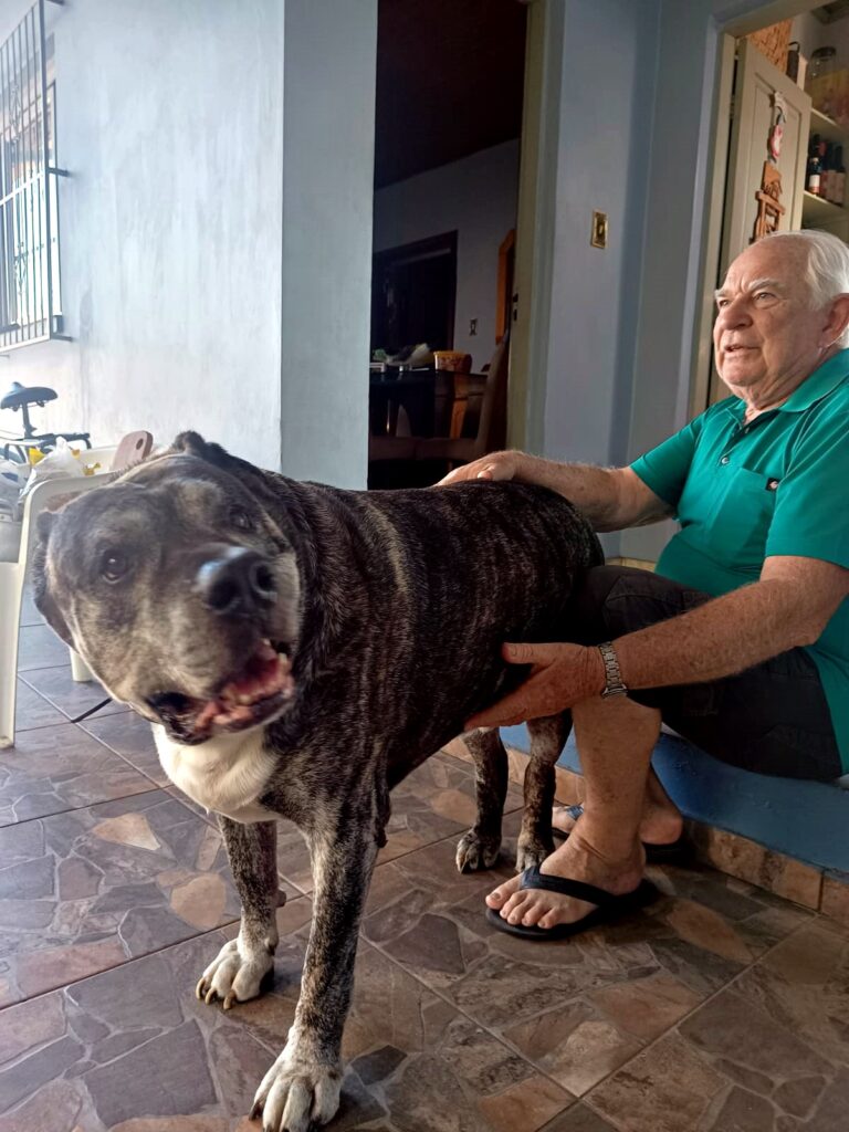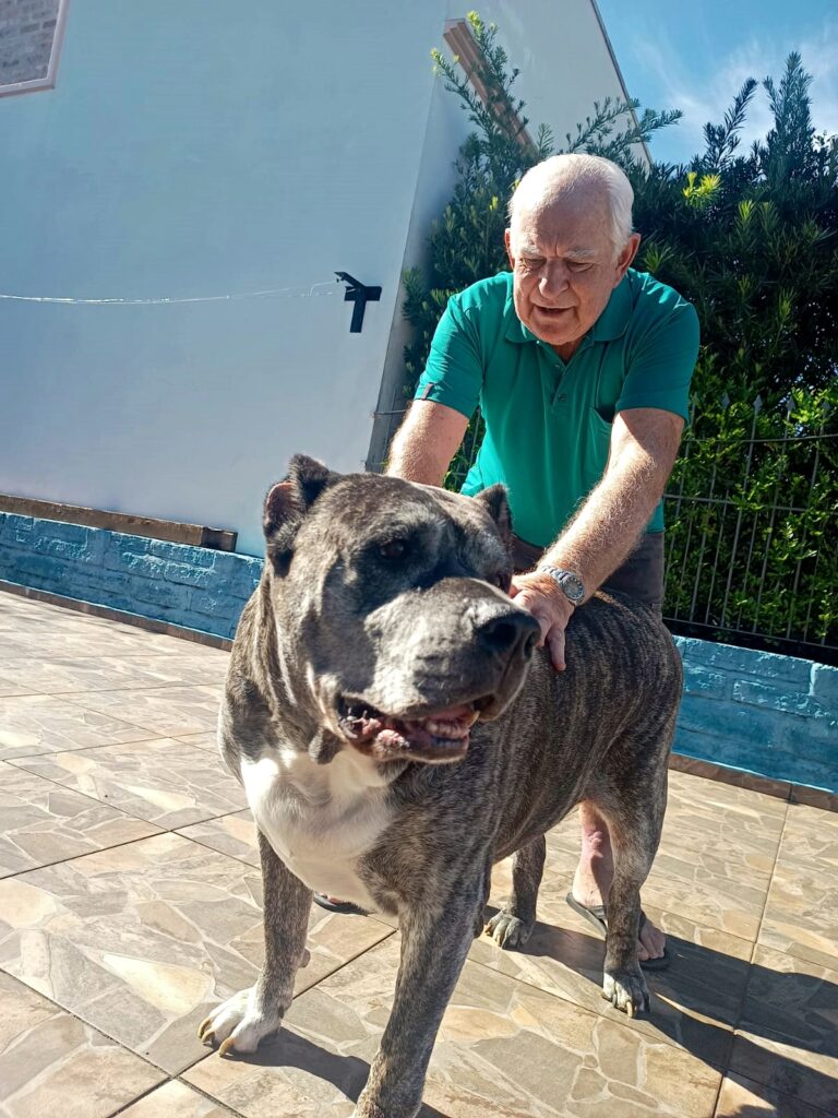 Tutor do Tigre há cerca de oito anos, desde que ele era um filhote, seu Nelson ficou viúvo há cinco anos e, desde então, o cão Cimarron Uruguaio tem sido seu grande companheiro.
