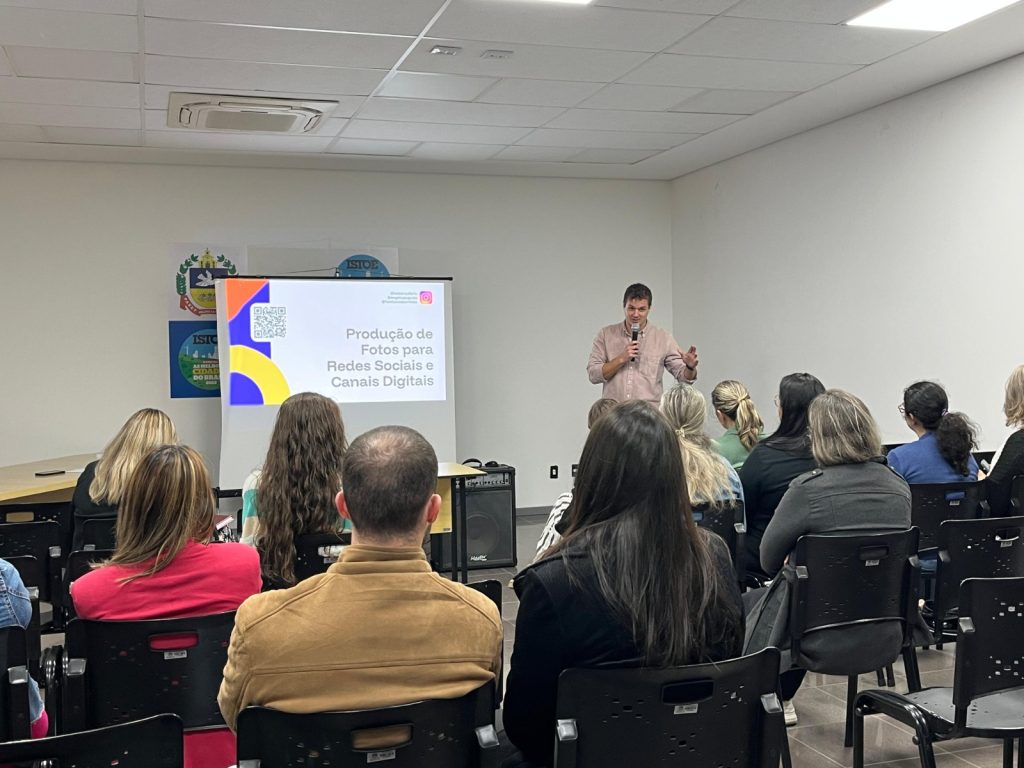 O primeiro encontro ocorreu no Centro Administrativo Prefeito Lauri Auri Krause e trouxe a palestra Produção de Fotos para Redes Sociais, conduzida pelo consultor de marketing Ângelo Augusto. Durante a apresentação, ele explicou as diferenças entre fotos para redes sociais e para e-commerce, detalhou conceitos de iluminação, como luz dura e luz difusa, e ofereceu orientações práticas sobre enquadramento, uso de cores e aplicação da regra dos três terços, técnicas que podem aprimorar a comunicação visual das marcas.