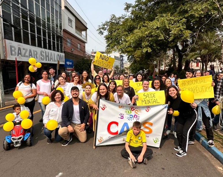 No domingo, dia 8 de setembro, os integrantes do CAPS participaram do Desfile Cívico, momento em que fizeram a divulgação e a conscientização sobre o Setembro Amarelo e os serviços de Saúde Mental no município, com os profissionais da Saúde Mental.