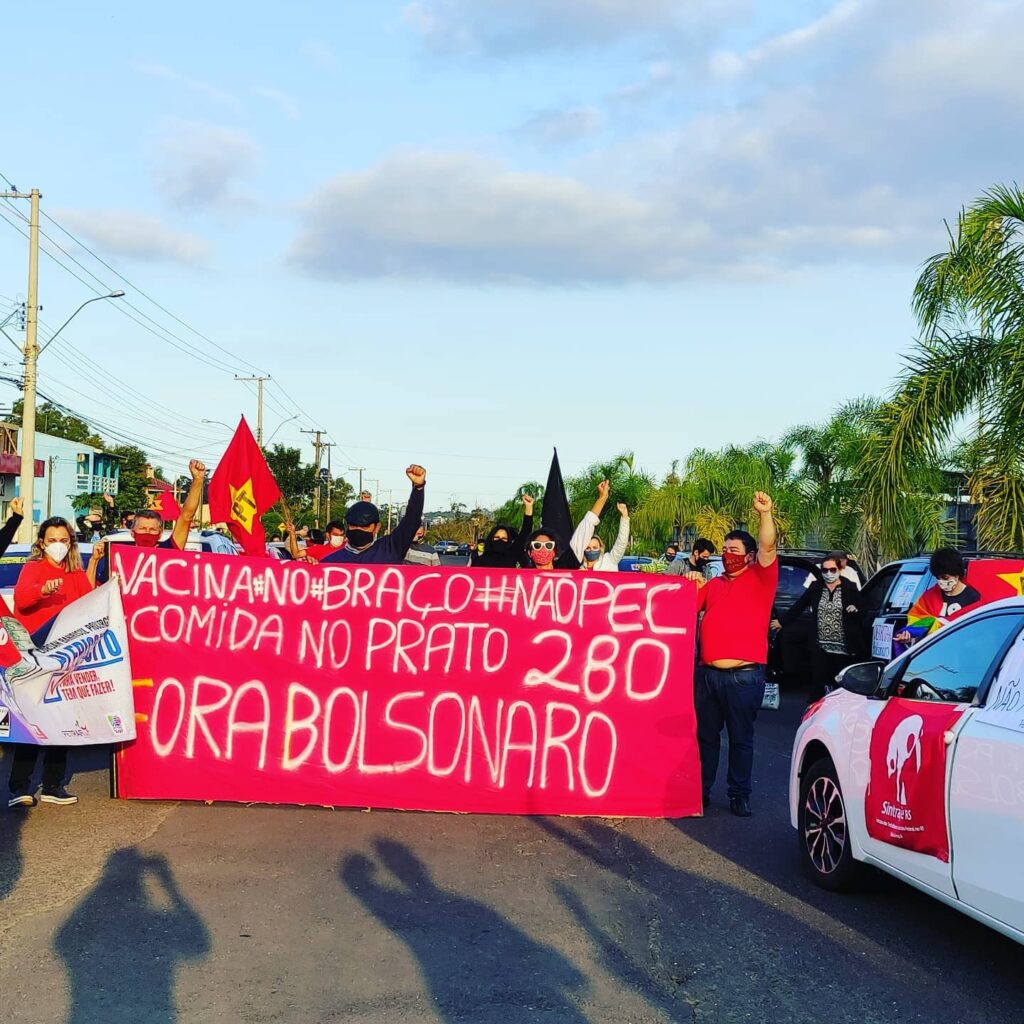 Os manifestantes utilizaram cartazes cobrando o governo federal para distribuir mais vacinas. Também fizeram cobranças por uma política econômica que garanta “comida no prato” da população brasileira. Mencionaram contrariedade às propostas de emenda à Constituição de número 280 (que retira exigência de plesbiscito para a venda de estatais no Rio Grande do Sul) e 32 (Reforma Administrativa da União).