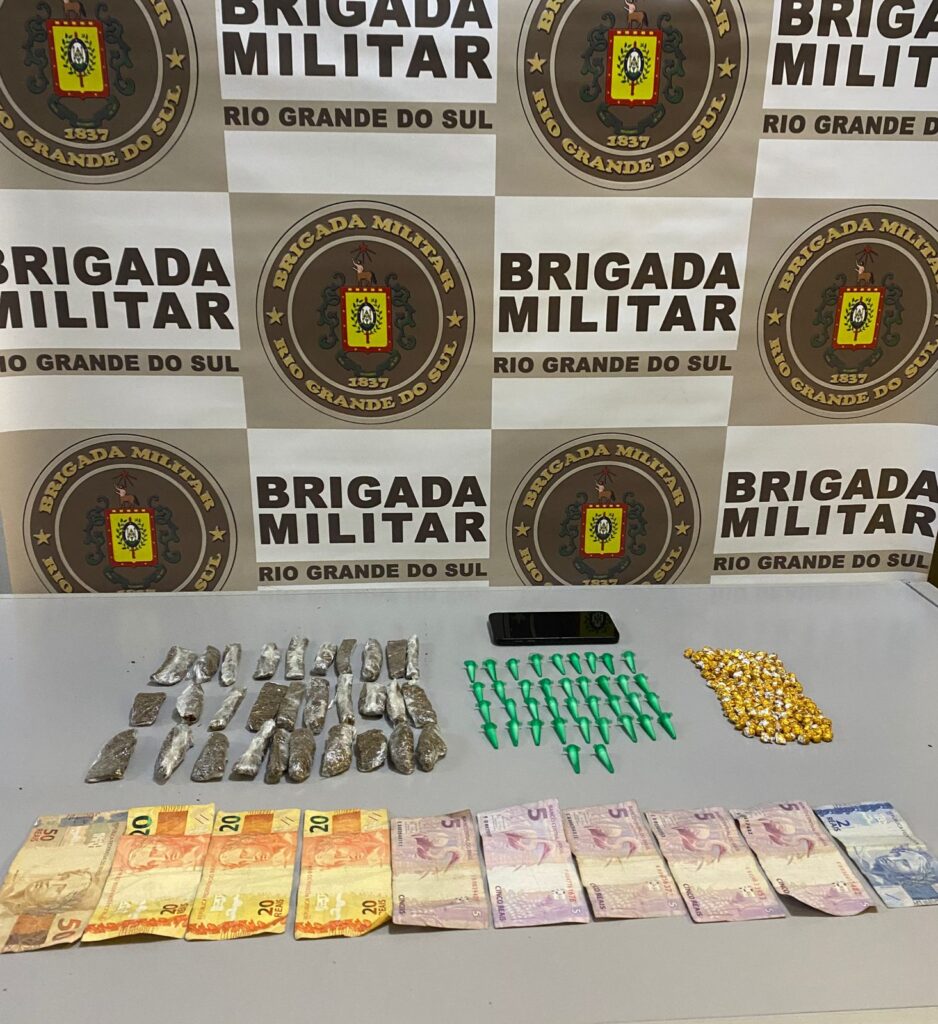 Após receber a informação de que estaria ocorrendo a comercialização de drogas ilícitas, os policiais chegaram ao local denunciado e abordaram o homem, de 48 anos, e com ele foram encontrados 15 pinos de cocaína, 10 porções de maconha, 11 pedras de crack e R$137.