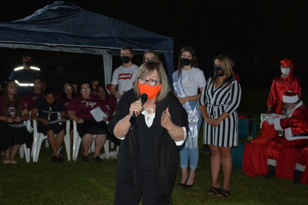 Durante seu discurso, a prefeita Sirlei Silveira destacou a importância para a Administração de incluir o bairro Eldorado na programação natalina deste ano e agradeceu ao empenho da vereadora Carmem Fontoura, moradora do bairro, que mobilizou a comunidade para a realização do evento, e também as voluntárias da localidade, que fizeram a decoração dos postes e ruas do Eldorado.
