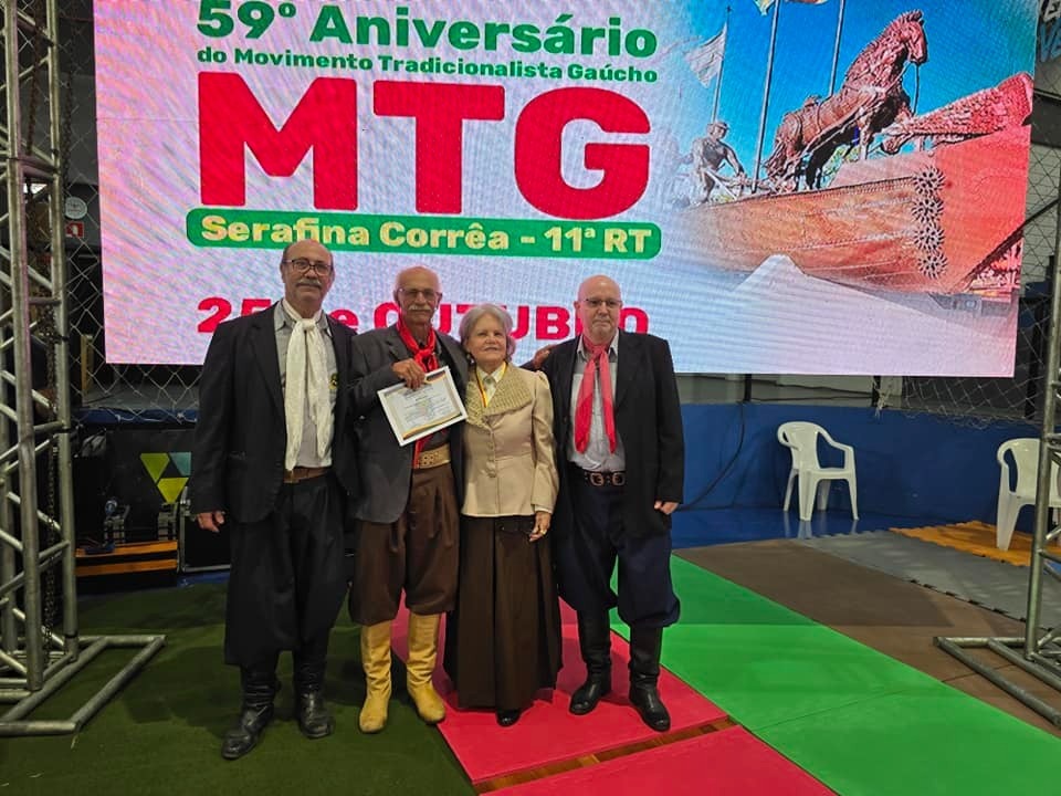 Também foram reconhecidos com a Comenda João de Barro os tradicionalistas Ângelo Schneider, Claucia Ferreira e Flávio de Mello, pela contribuição ao fortalecimento do tradicionalismo na região. A homenagem simboliza o trabalho e o compromisso de cada um com a cultura, a história e os valores que representam o movimento.