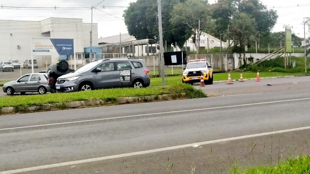 No início da tarde desta terça-feira (05), uma colisão entre dois veículos, na ERS-115, em Taquara, resultou no capotamento de um deles.