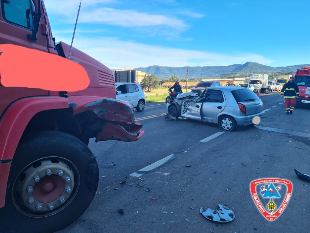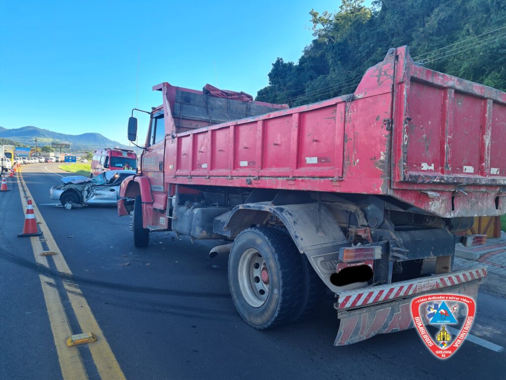 De acordo com o Comando Rodoviário da Brigada Militar, por volta de 8h, o condutor do caminhão Mercedes Benz, caçamba, seguia pela rodovia, no sentido Taquara/Igrejinha, quando, no Km 6, no bairro Casa de Pedra, foi surpreendido pelo automóvel GM/Celta, que fazia uma conversão para entrar na pista.