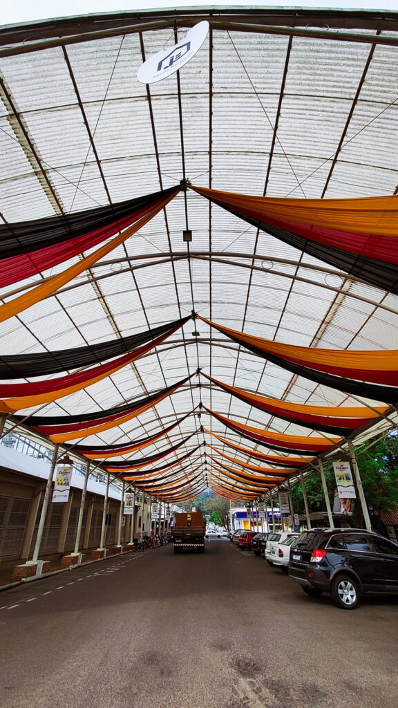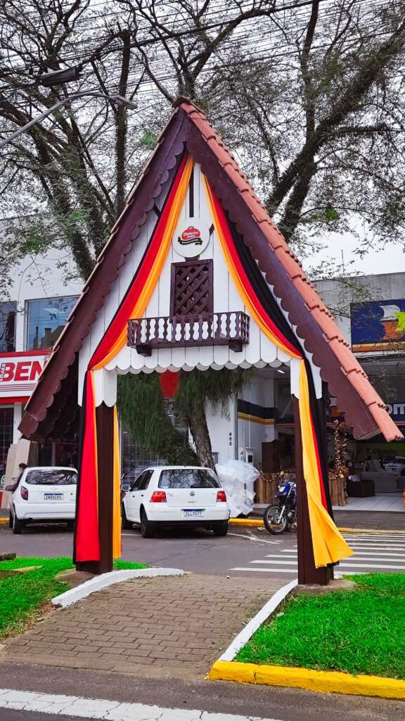 “Não esquecemos das cores da bandeira da Alemanha, nos lembrando a nossa origem tão forte aqui na cidade. Temos ainda guirlandas e brasões verdejantes tão presentes na tradicional festa típica”, complementa.
