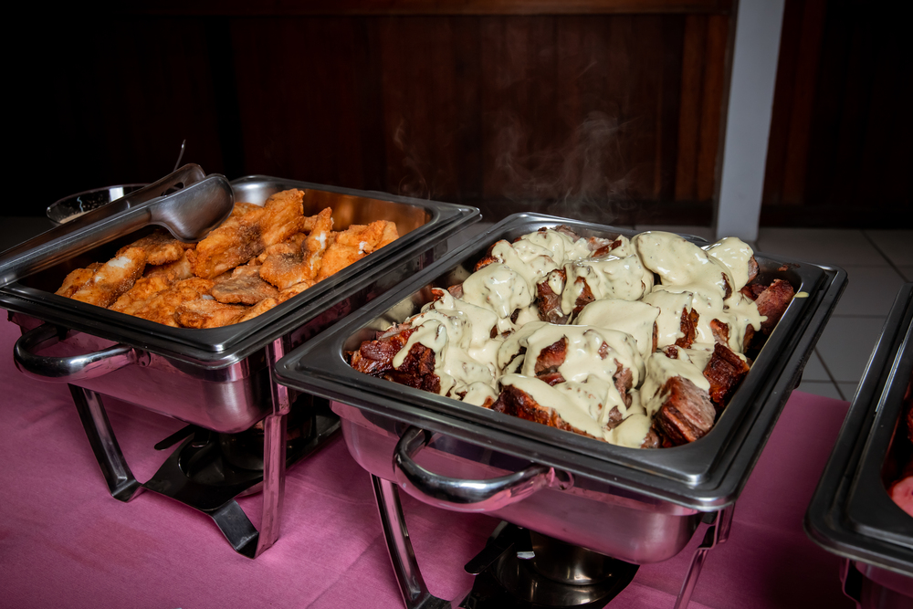 – Arroz branco, batata com bacon, espaguete alho e óleo, penne ao molho madeira, bolinho de batata, bolo de carne com queijo, frango com bacon, filé suíno ao molho de mostarda, salsichão, matambre, carne de panela.