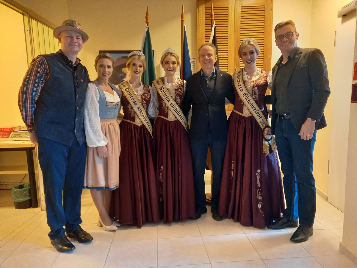 A manhã da comitiva na capital gaúcha iniciou com a visita ao Consulado Geral da Alemanha em Porto Alegre. Na ocasião, o grupo foi recebido pelo Cônsul-geral do país na cidade, Dr. Milan Andreas Simandl, que foi convidado a prestigiar a abertura da festa. Durante a conversa, foram abordados temas relacionados à valorização da cultura germânica, um dos propósitos da Oktoberfest de Igrejinha.