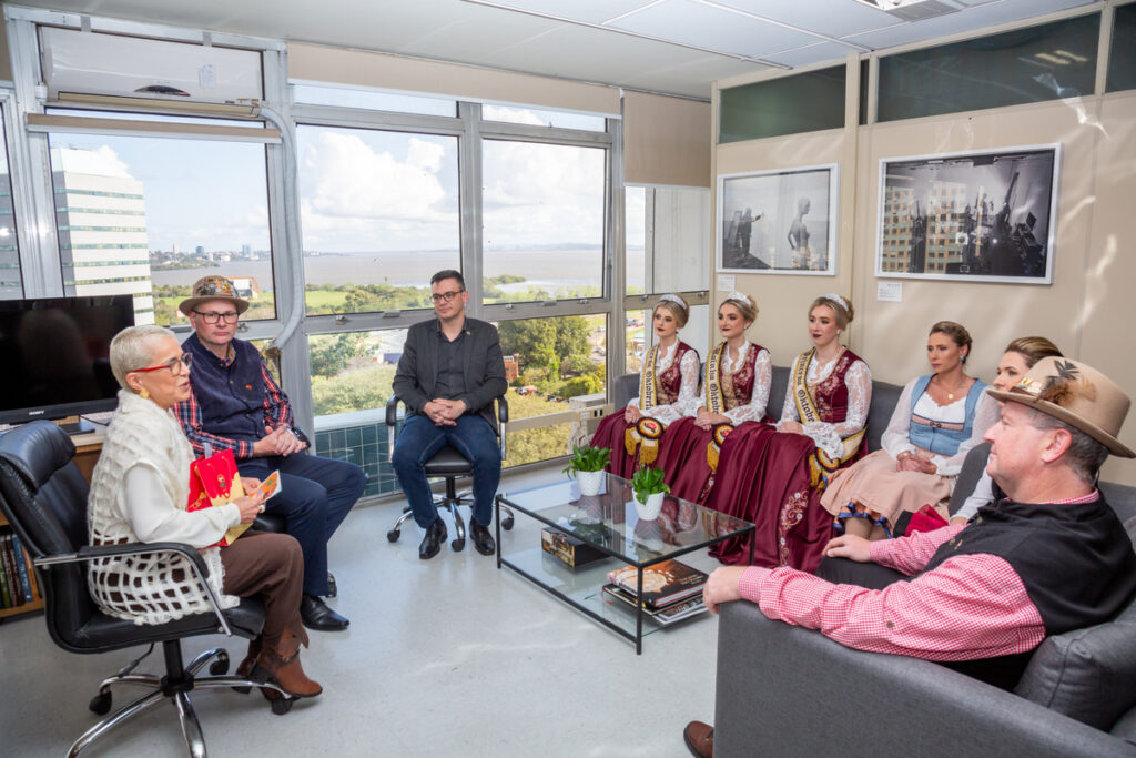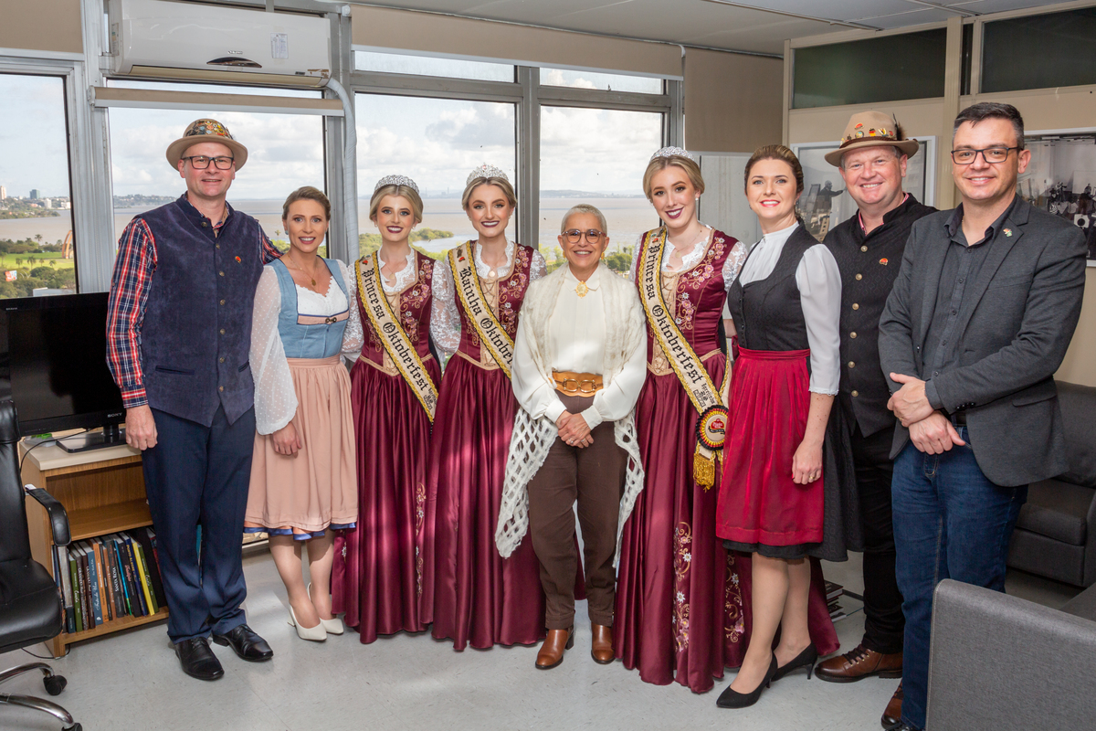 Para finalizar o dia, a comitiva realizou uma visita à Sedac/RS, onde foi recebida pela Secretária de Estado da Cultura, Beatriz Araujo. Além de entregar o convite para a solenidade de abertura da festa, o encontro teve como pauta a importância de eventos como a Oktober e das leis de incentivo à cultura.