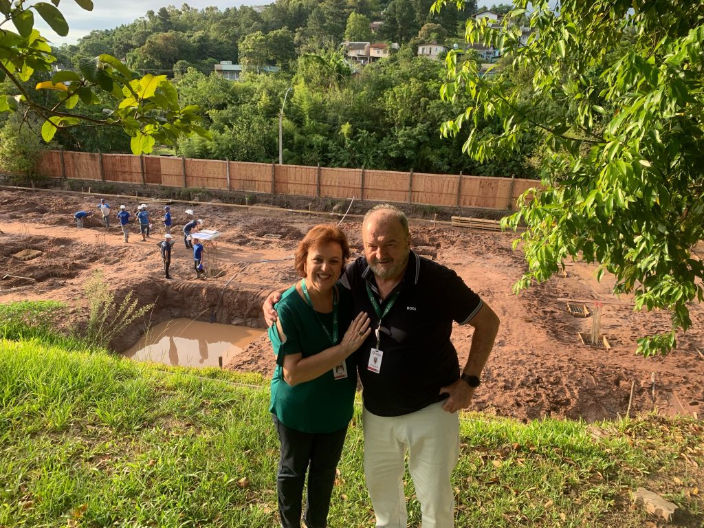 A reportagem da Rádio Taquara visitou o canteiro de obras na tarde desta terça feira, sendo possível visualizar que o trabalho inicial de estaqueamento já está bem adiantado. Segundo o presidente da Associação Hospitalar Vila Nova, Dirceu Dal’Molin, que também estava em visita ao município, as previsões são de um prazo de seis meses para erguer a estrutura, que contará com três pisos, e depois mais alguns meses para a parte final, incluindo a montagem de móveis e instalação de equipamentos. “Esperamos poder inaugurar no final do ano”, acrescentou a administradora do Bom Jesus, Marisete Dal’Molin, acrescentando que ainda falta definir qual a destinação do terceiro piso da nova estrutura.