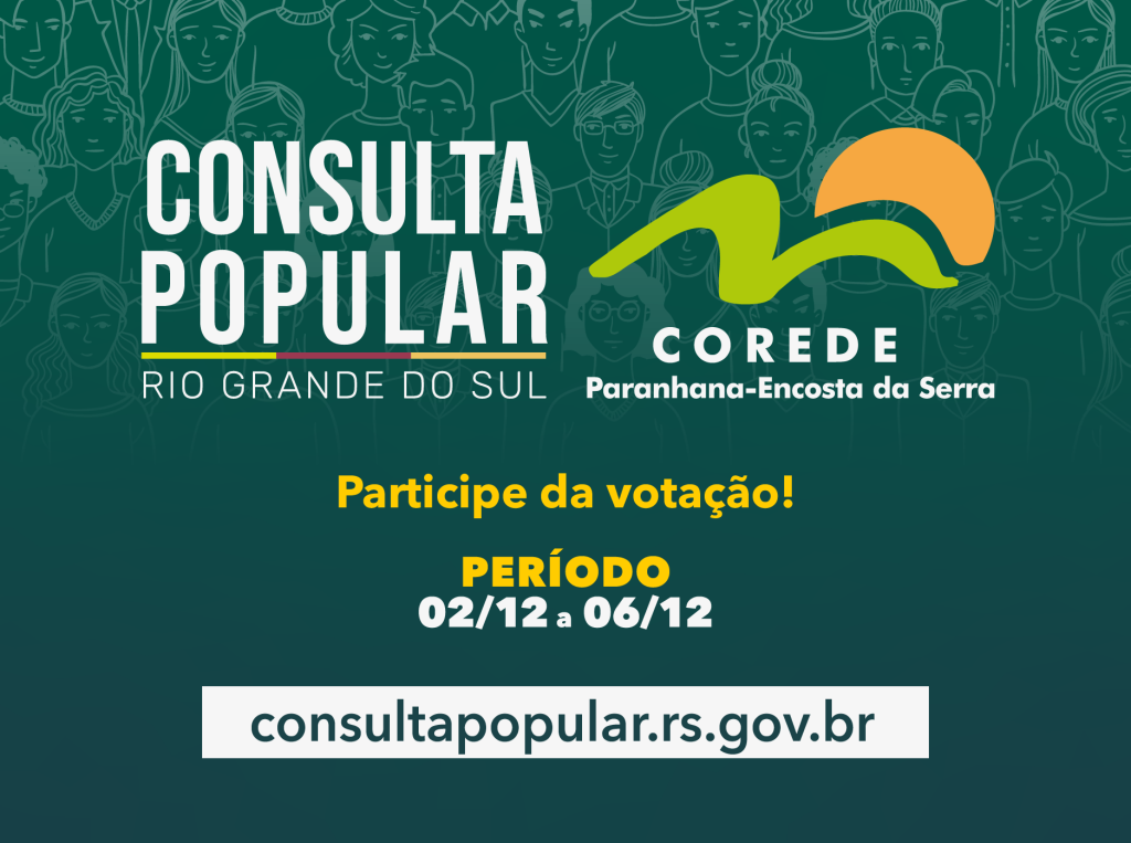O Conselho Regional de Desenvolvimento Paranhana/Encosta da Serra (Corede VP/Encosta da Serra) divulgou as propostas que estarão disponíveis para votação na Consulta Popular 2024, programada para ocorrer de 2 a 6 de dezembro. O processo permite que os cidadãos escolham projetos prioritários para receberem investimentos públicos, influenciando diretamente o desenvolvimento da região.